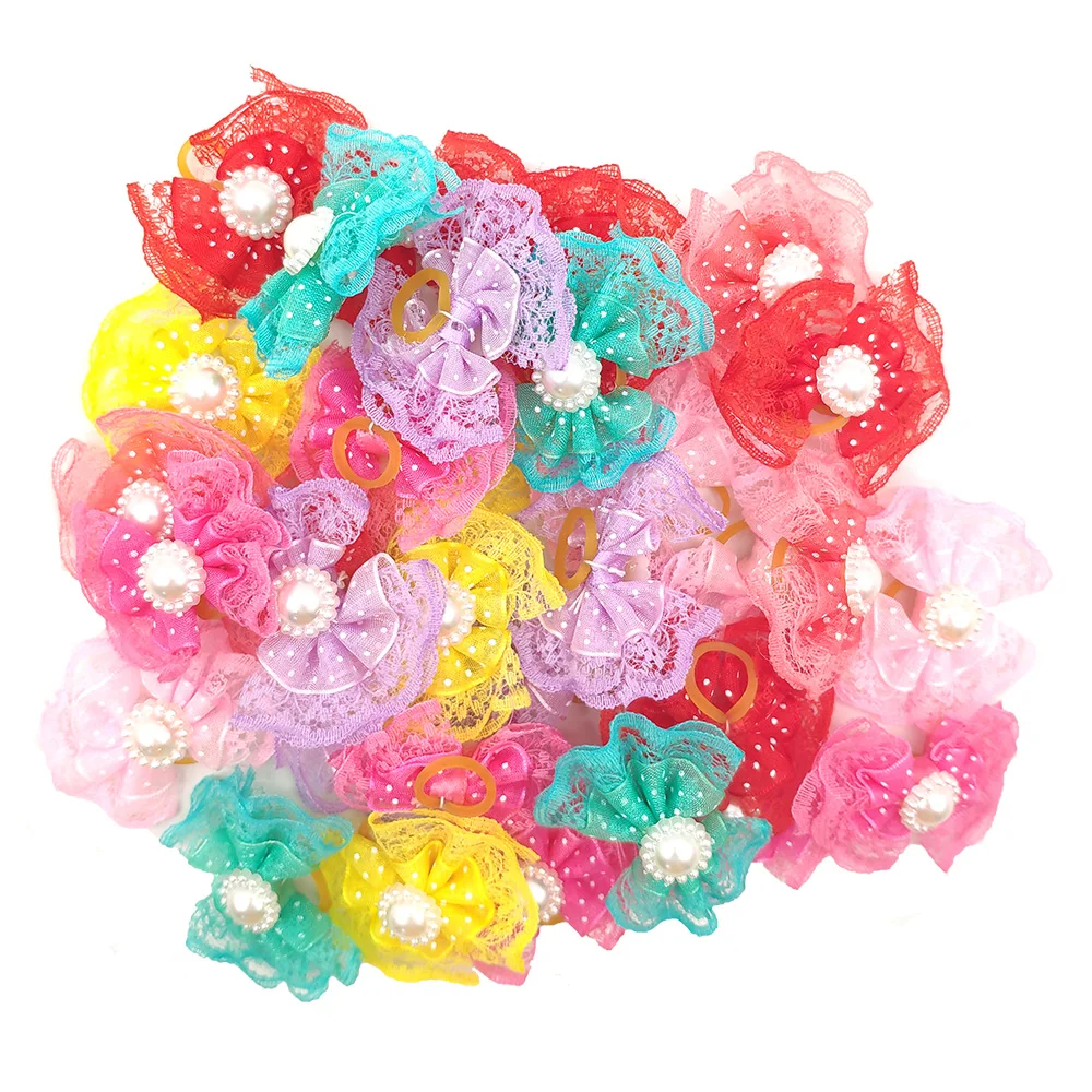 Товар:50 шт./лот, модная заколка для собак, кошек, Боба, разные цвета, Бабочка, новинка, кружевная заколка для собак, резиновые ленты, ручной работы, бутик, подарок
