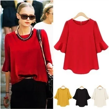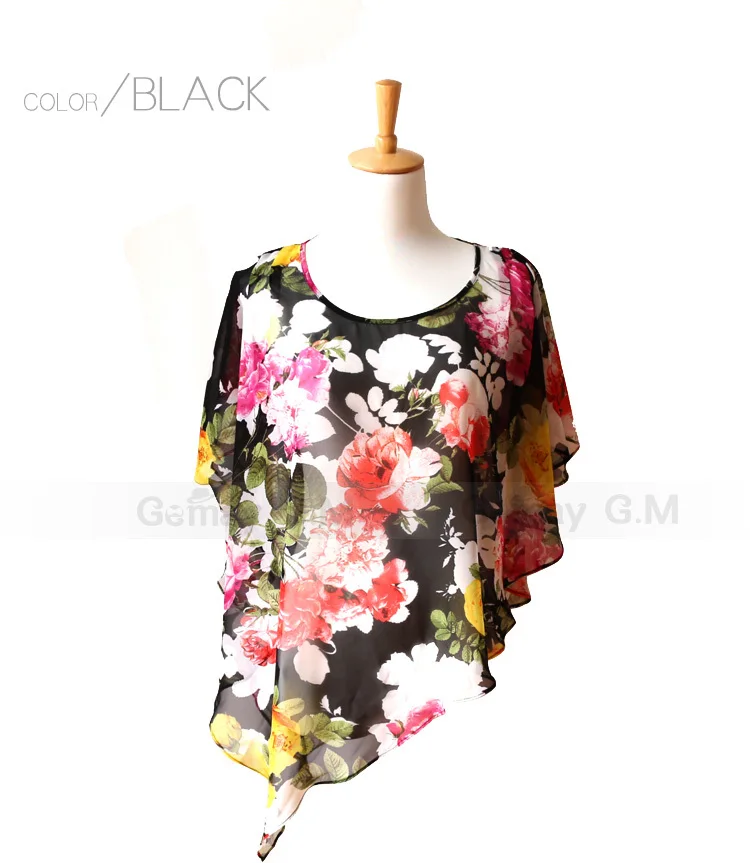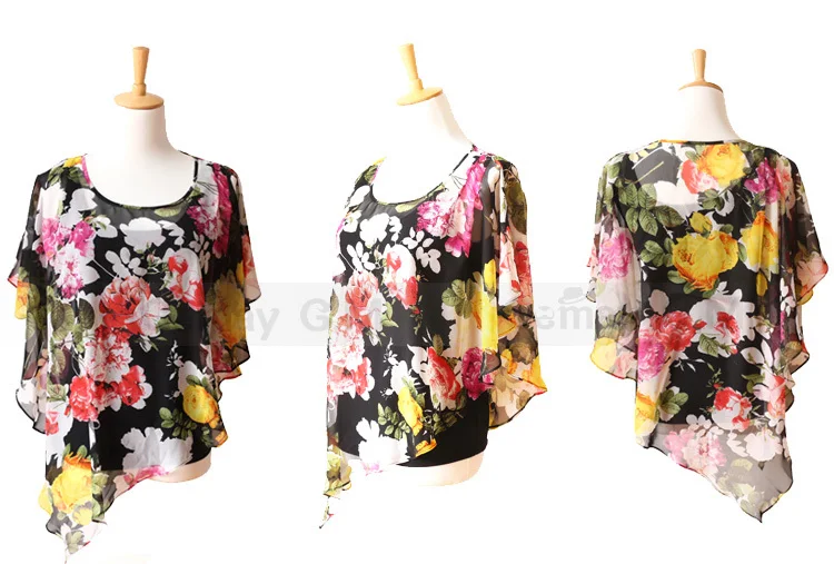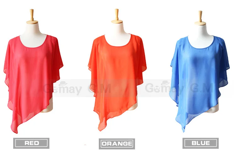 Модные шифоновые летние женские блузки и рубашки, новая Повседневная Блузка Летучая мышь
