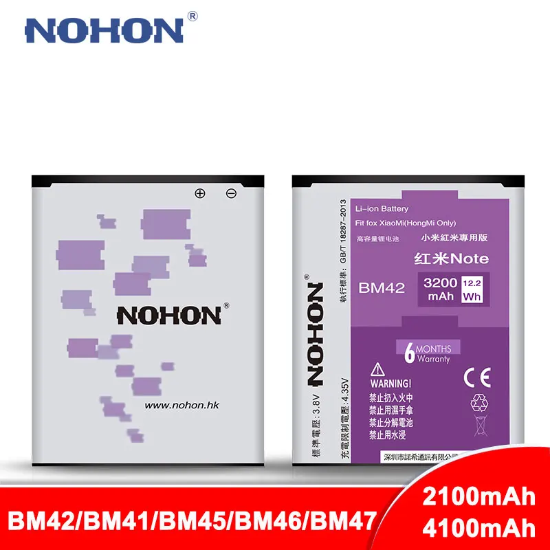 Nohon Аккумулятор для Xiaomi Redmi Note 2 3 Hongmi 1 1 S 2 2A 3 3 S 3X 4X BM42 BM41 BM45 BM46 BM47 запачасти замены lcd мобильного телефона Bateria