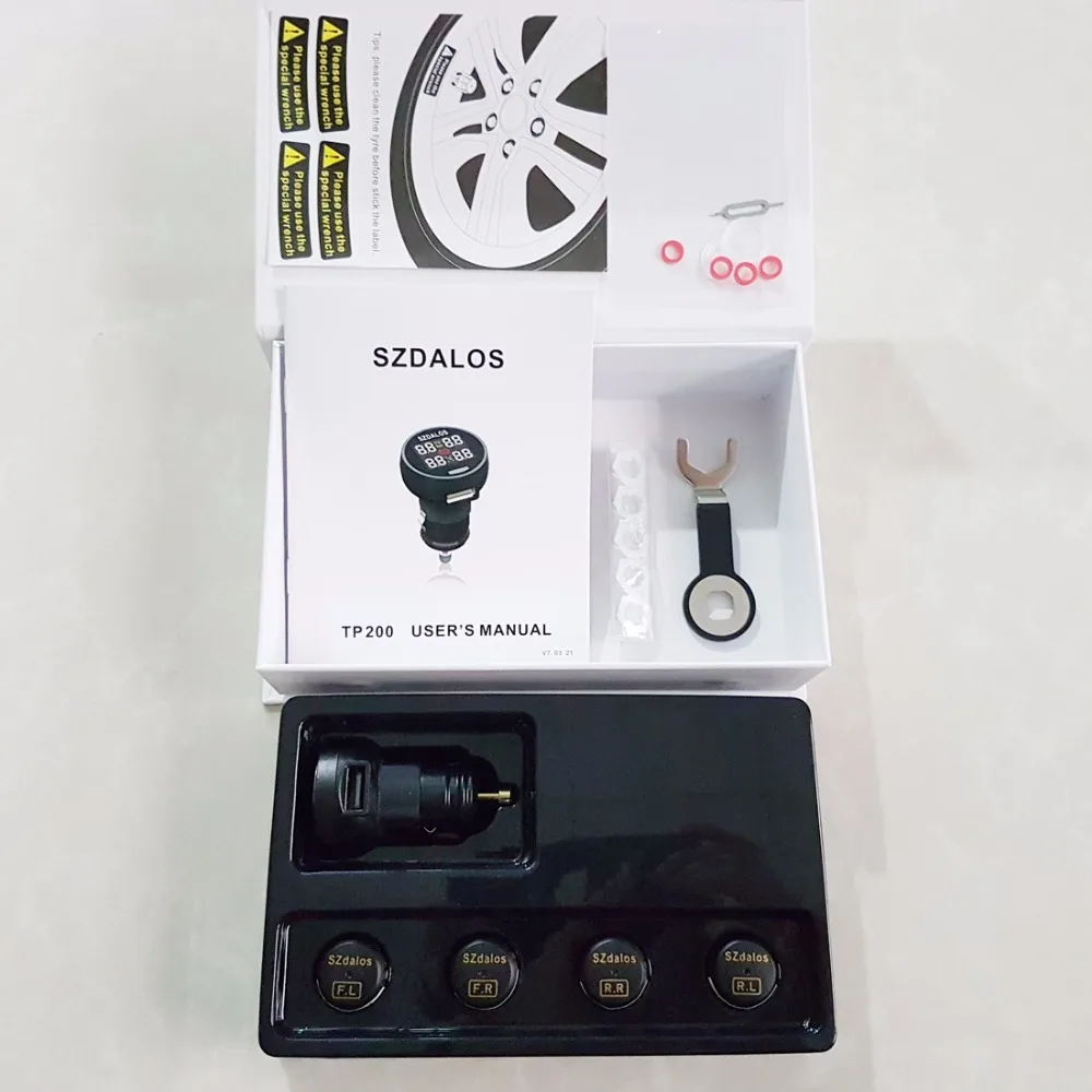 При включенном дисплее есть USB-разъем на дисплее, он может заряжать некоторые портативные продукты, такие как мобильный телефон или MP3, пока монитор давления в шинах работает. Выходное напряжение: 5 В выходной ток: 1 А