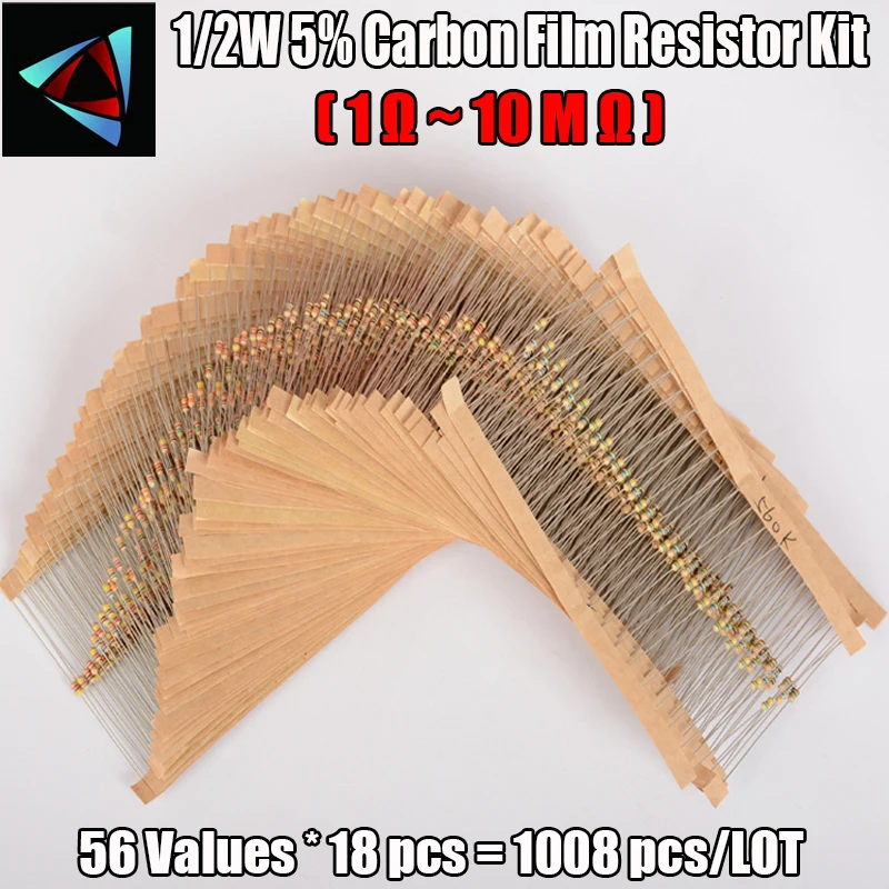 1008 шт. 56 значений 12 Вт 5% карбоновый пленочный резистор 1-10 МОм, электронное стандартное значение сопротивления, которое вам нужно