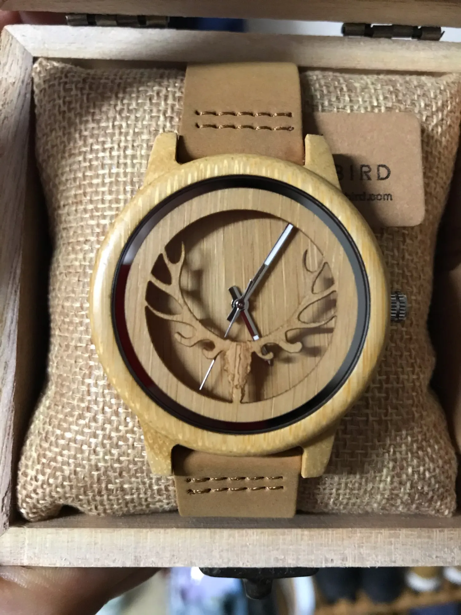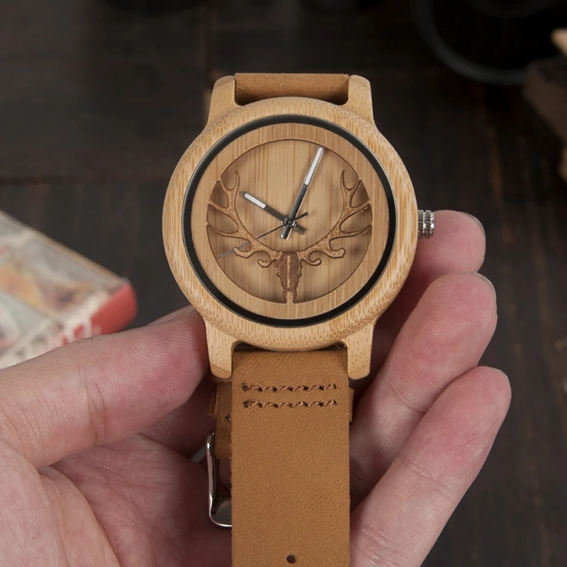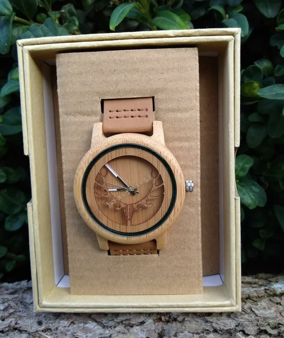Мужские наручные часы BOBO BIRD из бамбука, кварцевые наручные часы с ремешком из натуральной кожи и оленем, Прямая поставка
