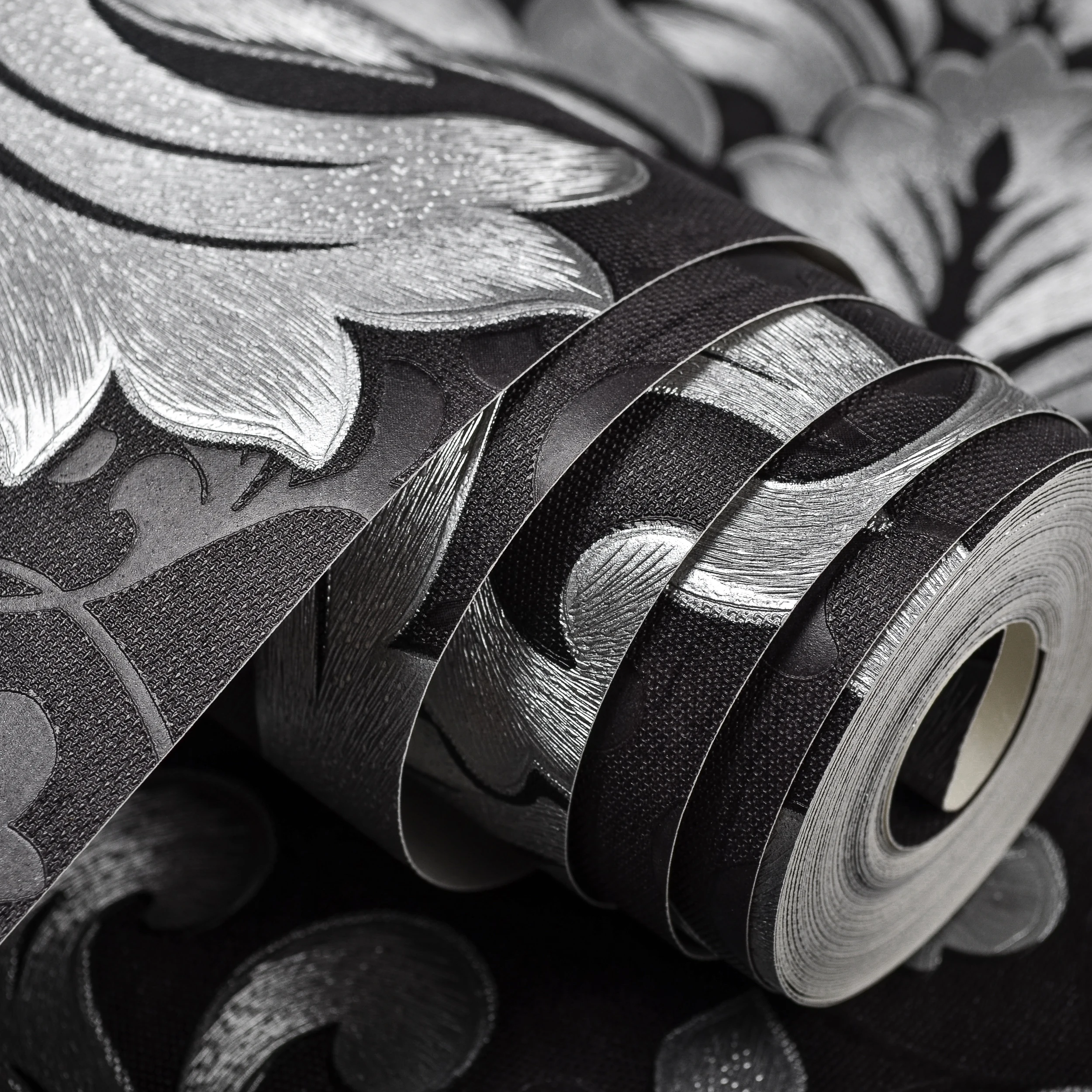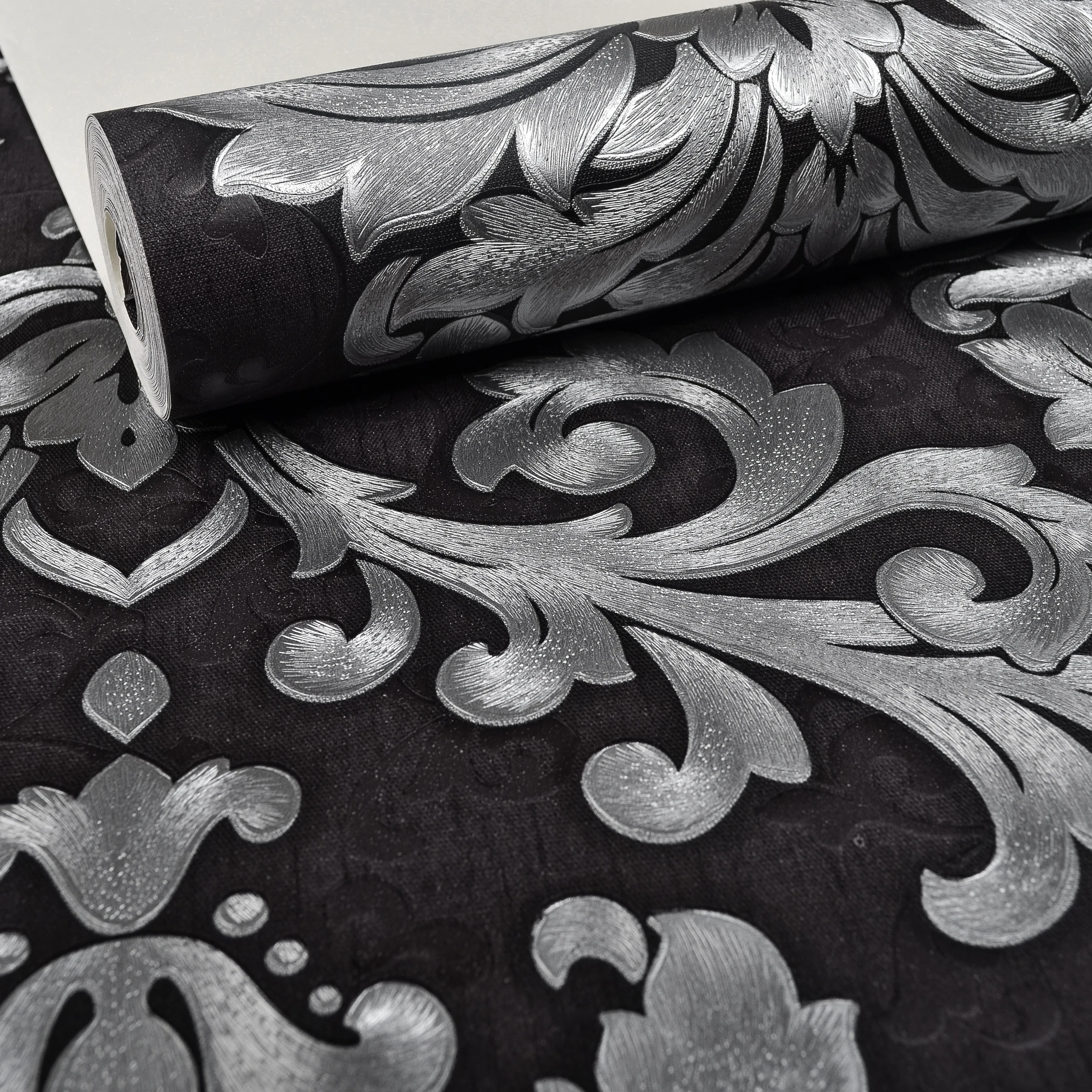 Роскошные современные металлические 3D виниловые обои, обои для спальни, гостиной, s-образные рулоны серебристо-серого, черного, красного, коричневого цветов