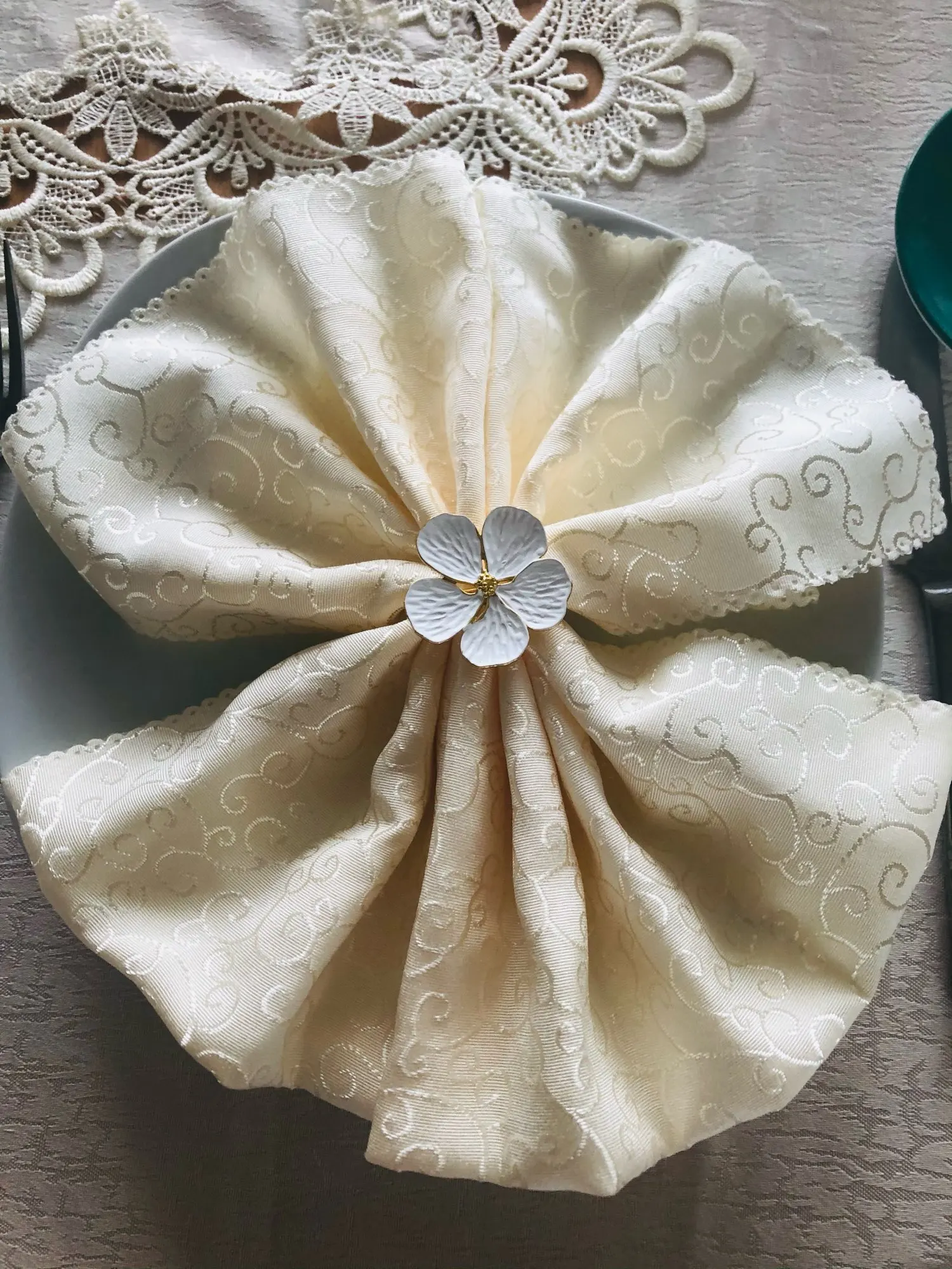 Очень приятные салфетки. Хорошее качество по цене. Я ожидал, что цвет будет очень белым; Цвет больше не белый. Хорошо гладить. Мы с нетерпением ждем возможности использовать их вместе с гостями, когда мы все привиты и защищены от COVID-19!