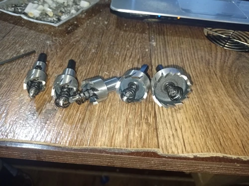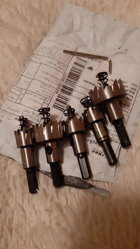 Пришли оочень быстро, всего за неделю. Успел уже немного поработать - режут хорошо. Единственное, глубина самой коронки и наличие пружинки не позволяют сверлить металл больше 3мм (пружинка упирается), но ее можно убрать и сверлить гораздо глубже.