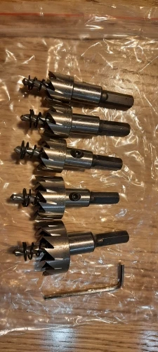 наконечники для обработки дерева,наточены очень хорошо,5 шт. разных диаметров,режущие зубья имеют твердость достаточную для обработки дерева.