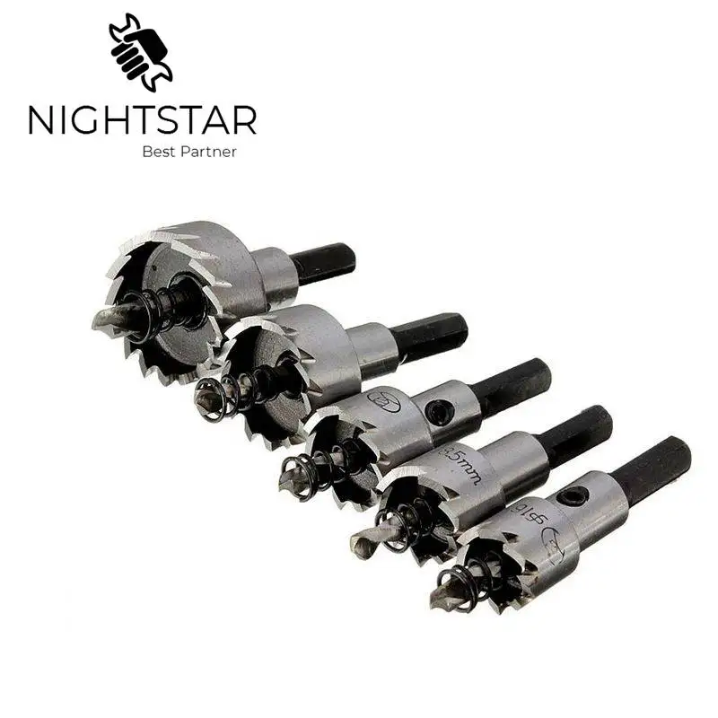 Набор сверл из быстрорежущей стали Binoax, 5 шт., Твердосплавные наконечники, кольцевая пила, металлический сплав из нержавеющей стали, 11618202530 мм, Деревообрабатывающие инструменты