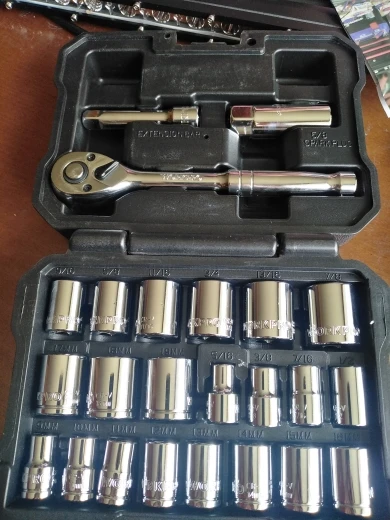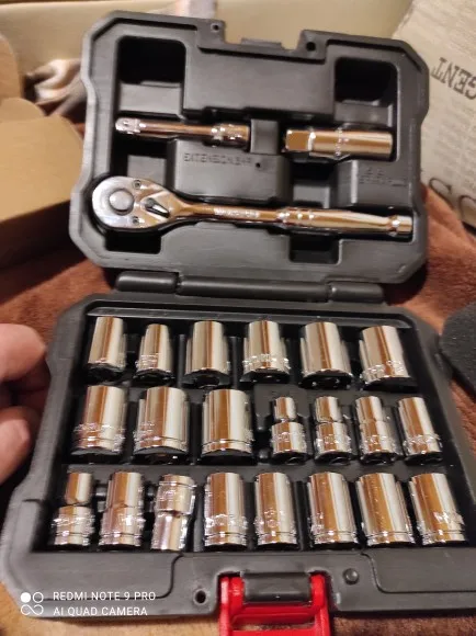 Заказ пришел быстро 1 сентября заказал 9 сентября получил на почте коробка целая. На вид качественный набор, трещётка тяжеленькая. Будем пробовать.