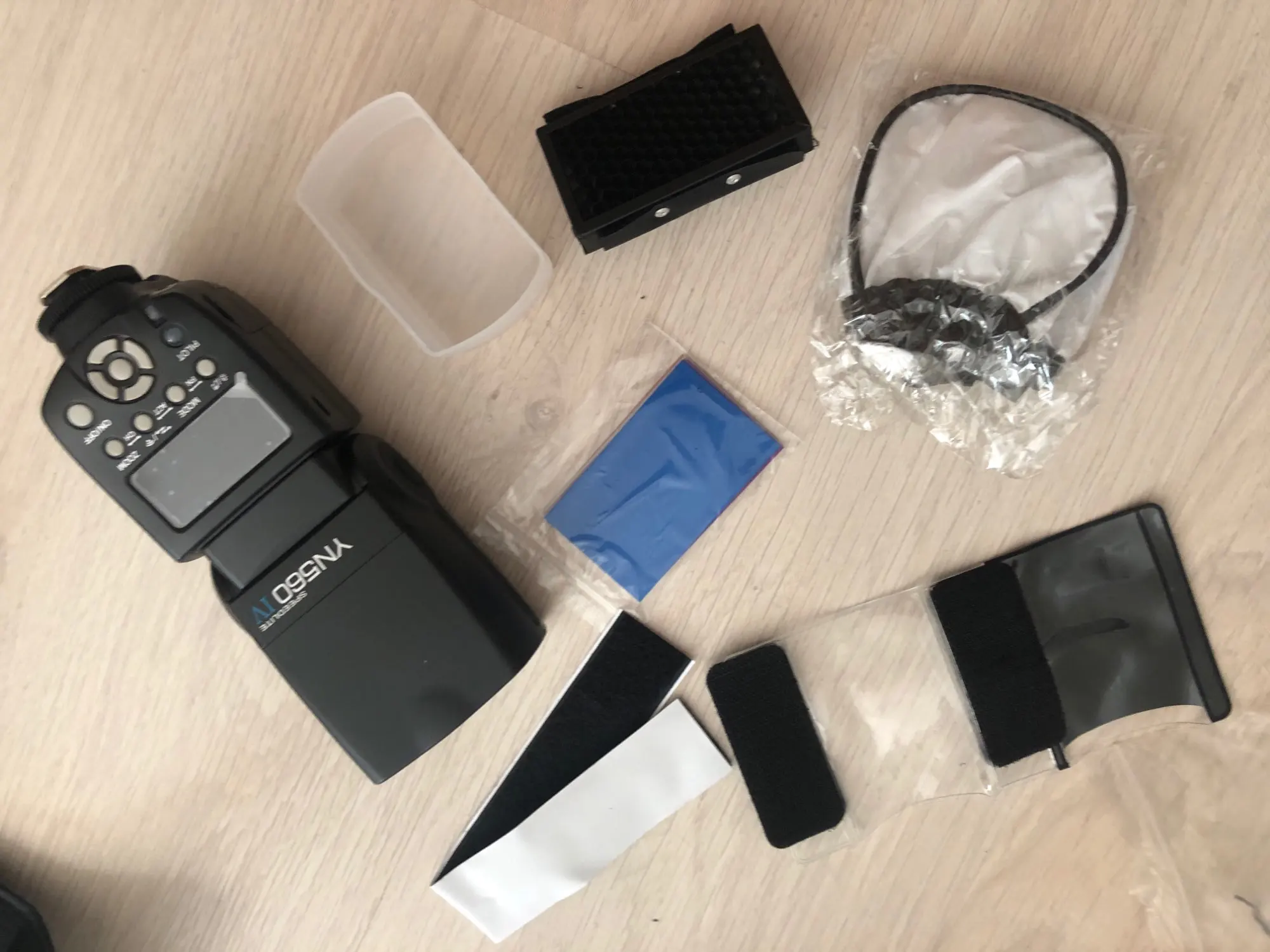 Вспышка хороша. Брала на Sony. Все прекрасно работает. Синхронизатор тоже отлично выполняет свои функции. Единственный минус - продавец ОЧЕНЬ ДОЛГО отправлял заказ. Сроки доставки все сорваны были на полмесяца. Это оставило неприятный осадок от покупки. Но техника сама по себе на высоте. Вспышка на батарейках, а не аккумуляторе, экран чёрный. Прикольные цветные ништяки в подарок. Для творческих съёмок - прекрасное дополнение.