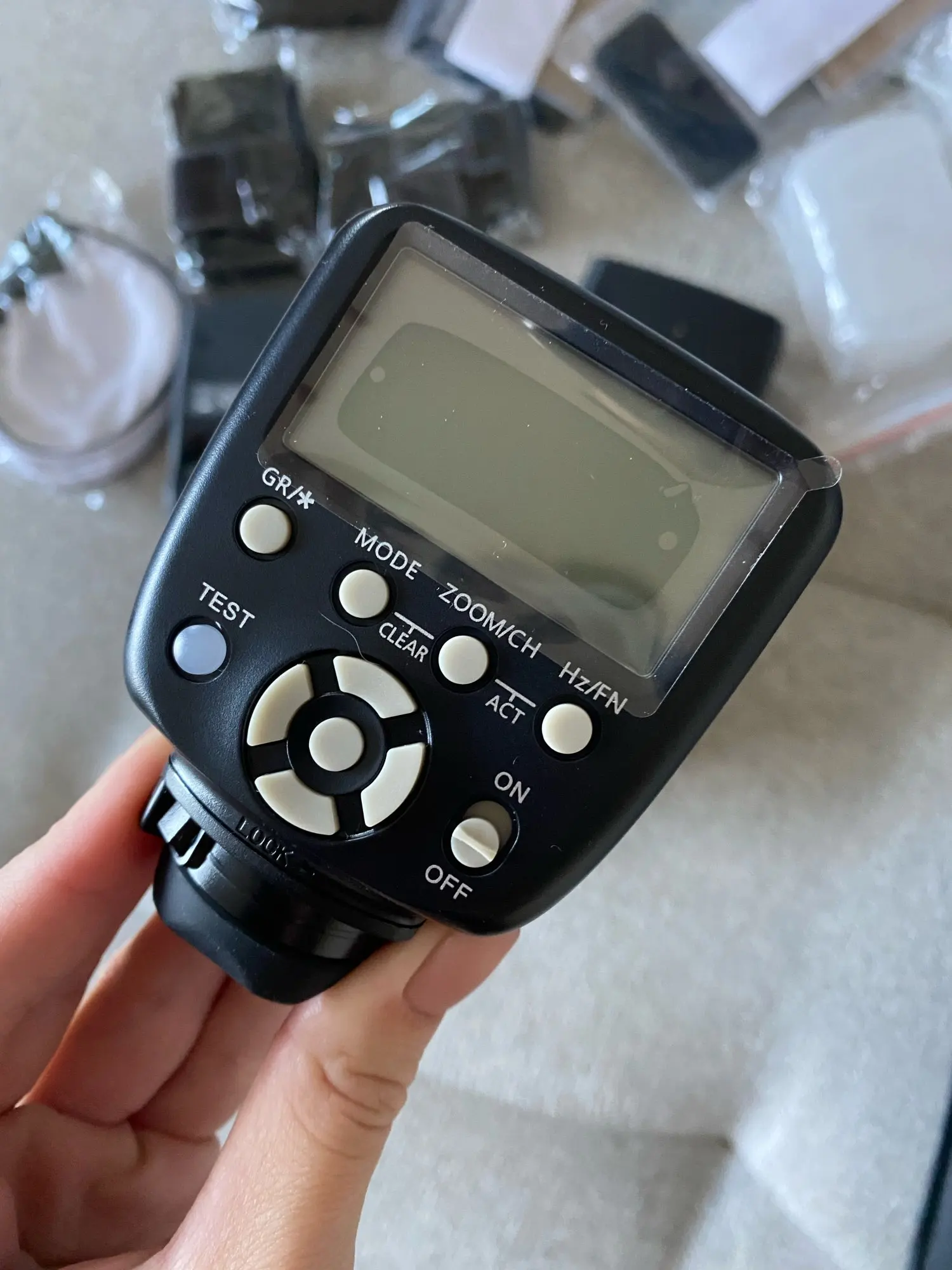 Отличные пыхи. Беру уже второй комплект. Правда имейте в виду что трансмиттер без и вспышки не рисуют сетку в темноте ( для точек фокусировки) если снимать в плохом освещении и не очень хорошим объективом это булет сложно. В целом все огонь функционал и цена. Плюс куча плюшек в подарок пришло. Мелкий софт на вспышку, соты, цветные фильтры. Все огонь работает. Рекомендую. Табло да чёрное. Мне даже больше нравится чем оранжевая.