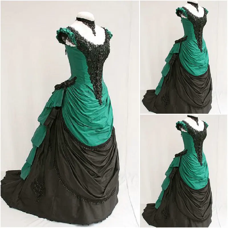 19 века винтажные костюмы 1860S викторианская готика/Гражданская война Южная Белль платье Скарлетт платье США 4-36 C-413