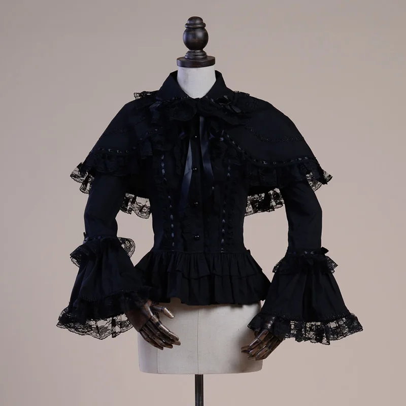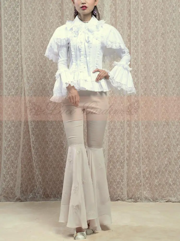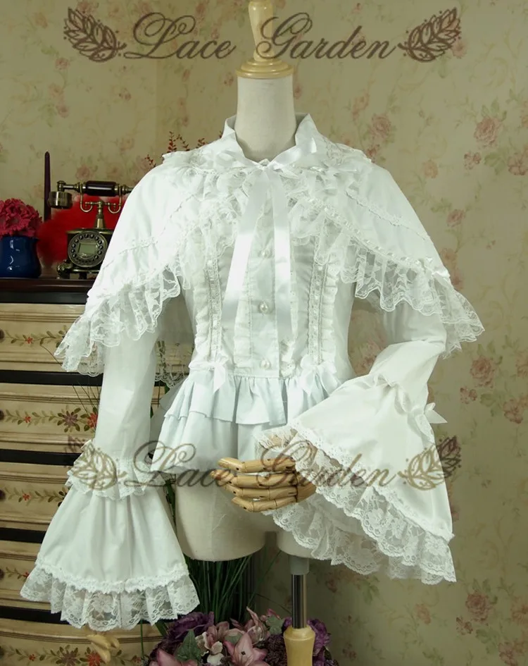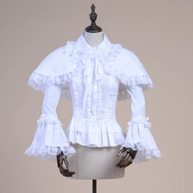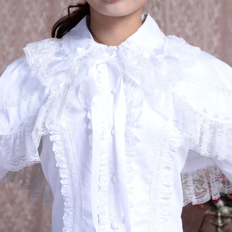 Женская винтажная кружевная блузка в викторианском стиле, белая рубашка с оборками в готическом стиле, костюм принцессы Лолиты, рубашка-шаль, на весну, 2 предмета