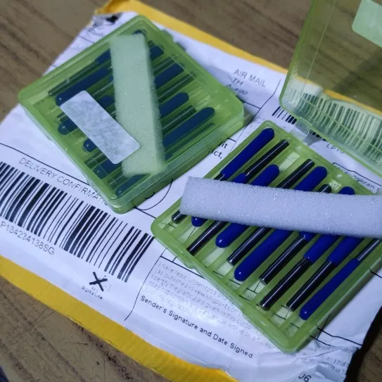 Доехали быстро, около 2 недель. Брал разного размера в итоге пришли все в отдельных коробочках, но не подписанные, теперь думай какие из них какие. Сами фрезы на вид качественные.