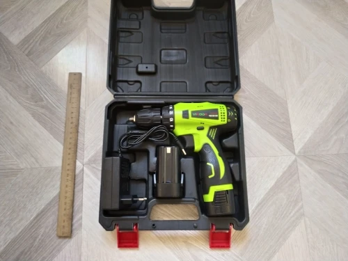 Быстрая доставка, до Красногорска за 3 дня. Шуруповерт хороший, двухскоростной, батарейка слабовата, при интенсивном использовании не хватает заряда на день.