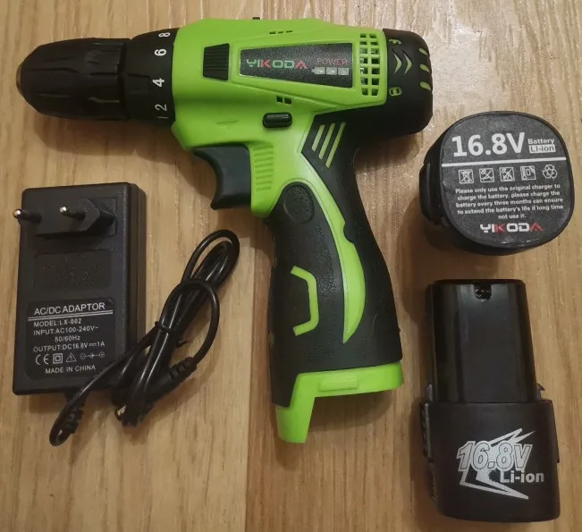 Дрель-шуруповерт YIKODA, 16,8 в, двухскоростная, с литиевым аккумулятором