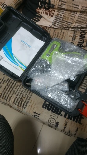 Очень быстрая доставка. Упаковка пришла вся помятая. Товар соответствует описанию. Всё хорошо. Мощный, компактный, удобный. При работе попахивает. Есть индикатор заряда. Муж доволен.