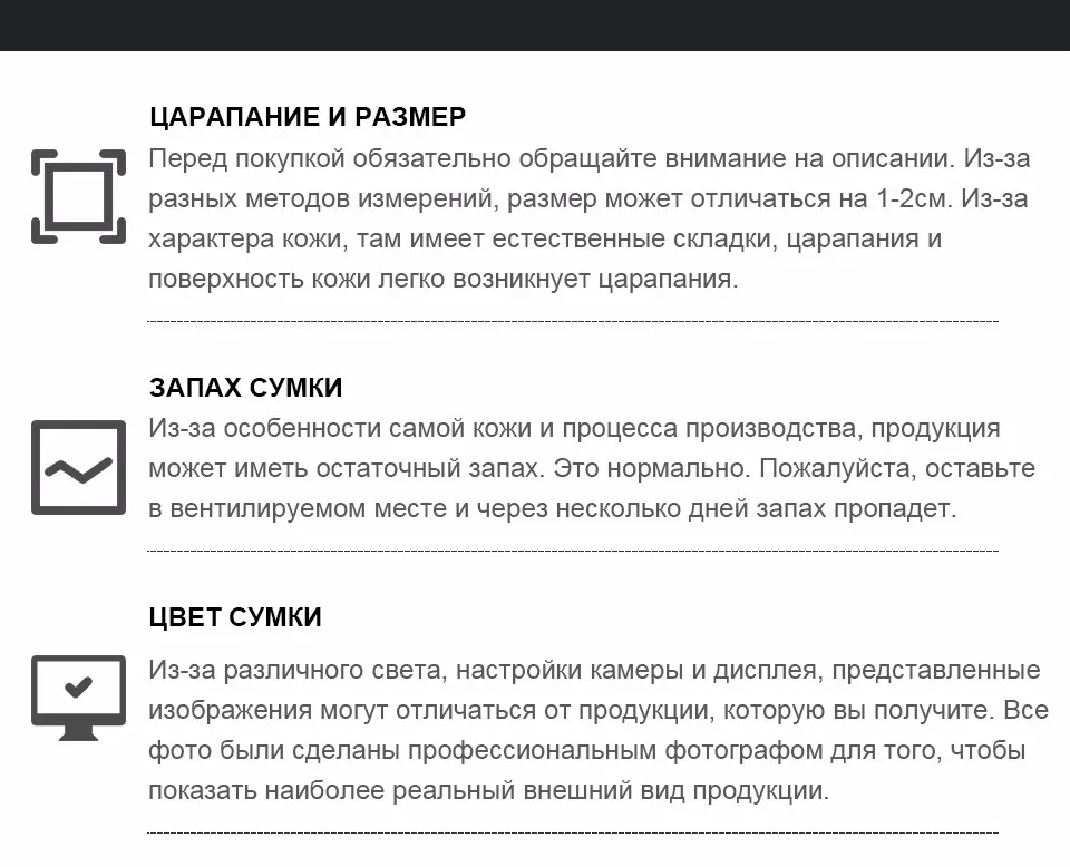 Товар соответствует описанию. Доставка в СПб две недели, с продавцом не общалась. Упакована сумка была в пыльник, пакет с пупырками, в карман была положена бумага. Не смотря на это сумка пришла с помятым уголком. Маленький размер, смартфон длиной 16 см поместился, большего размера уже не войдет. Строчки аккуратные, но пошита из кусочков кожи, разной толщины, не подобранные по фактуре. На мой взгдяд сумка не годится на подарок, простовата. Поместится паспорт, смартфон, деньги, карты, ключи. Товар и продавца рекомендую, сумка стоит потраченных денег, но отну звезду сняла, т.к. фотографии на сайте заметно отличаются от оригинала, приукрашены.