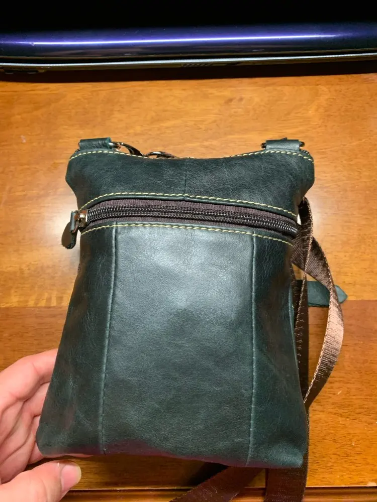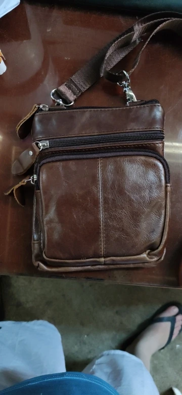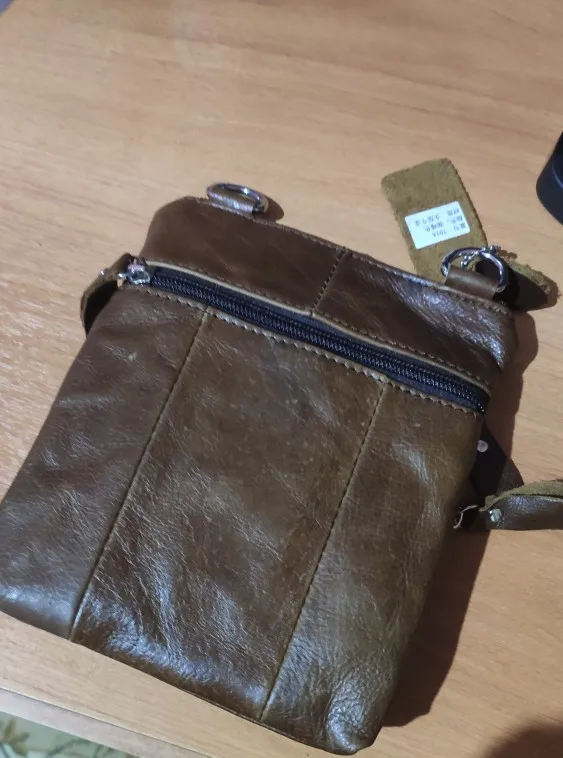 Получил что ожидал. Особенность сумочки - сверхлегкая! Меньше 150 грамм без ремня. Молнии функционируют легко, крепления ремня выглядят достаточными для небольших весов. Ремень кстати тоже легкий, но более чем прочный. Решил поджечь кусочек кожи. Воняло знатно, но не синиетикой, а паленой кожей, шерстью итп.