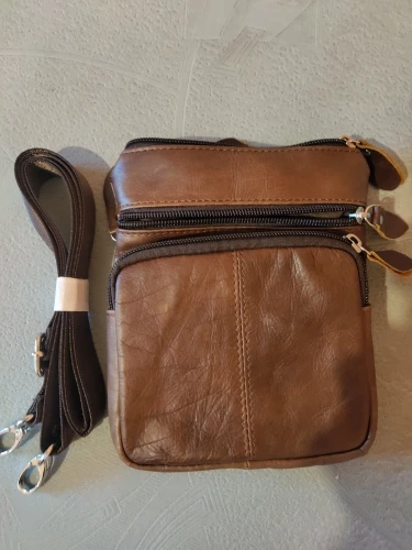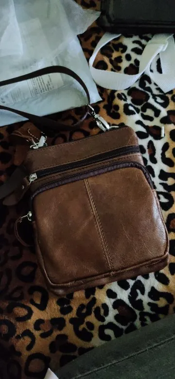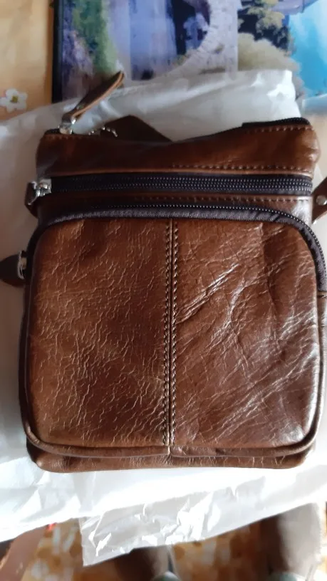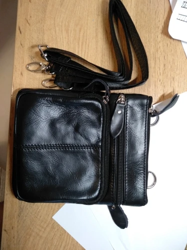 Ничего такая сумочка, надеюсь, мужу понравится) Действительно кожаная, описанию соответствует, с доставкой всё ок.