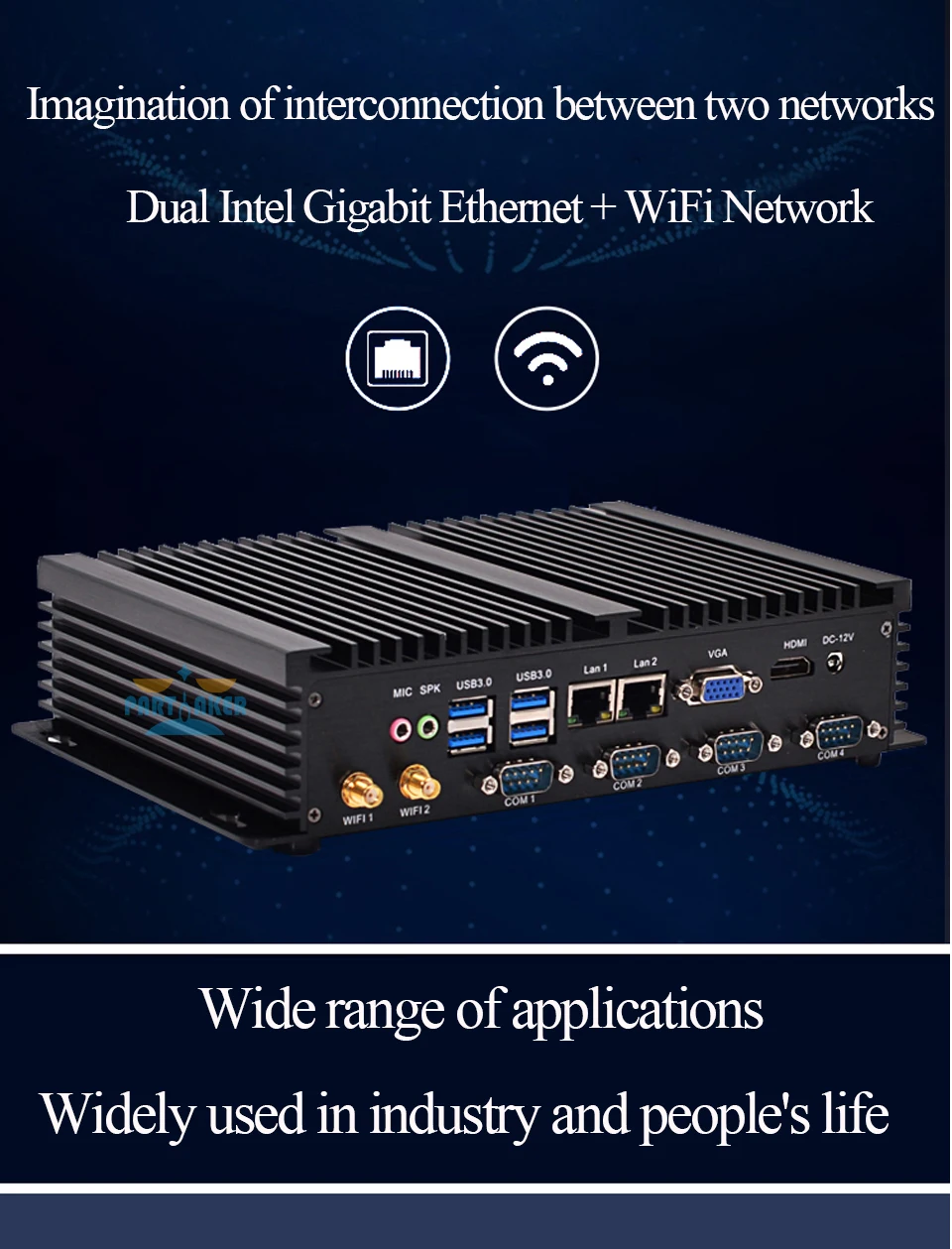 Широкое использованиеМодель I2 безвентиляторный мини-ПК очень универсальна, например: монитор, наблюдение, телевизор, цифровая вывеска, принтер, проектор и т. д. это будет превосходный мини-Безвентиляторный Компьютер.