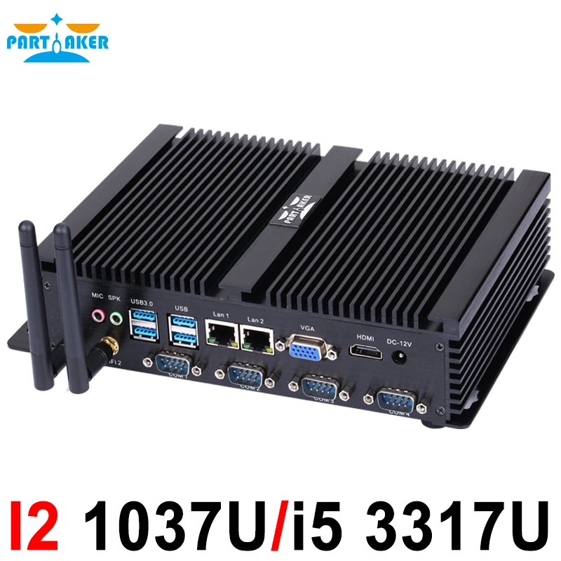 Мини-ПК parмягкий промышленный, без вентилятора, Intel Celeron 1037U Core i5 3317U Dual-Core Dual Lan 4 * COM, поддержка Linux, Windows