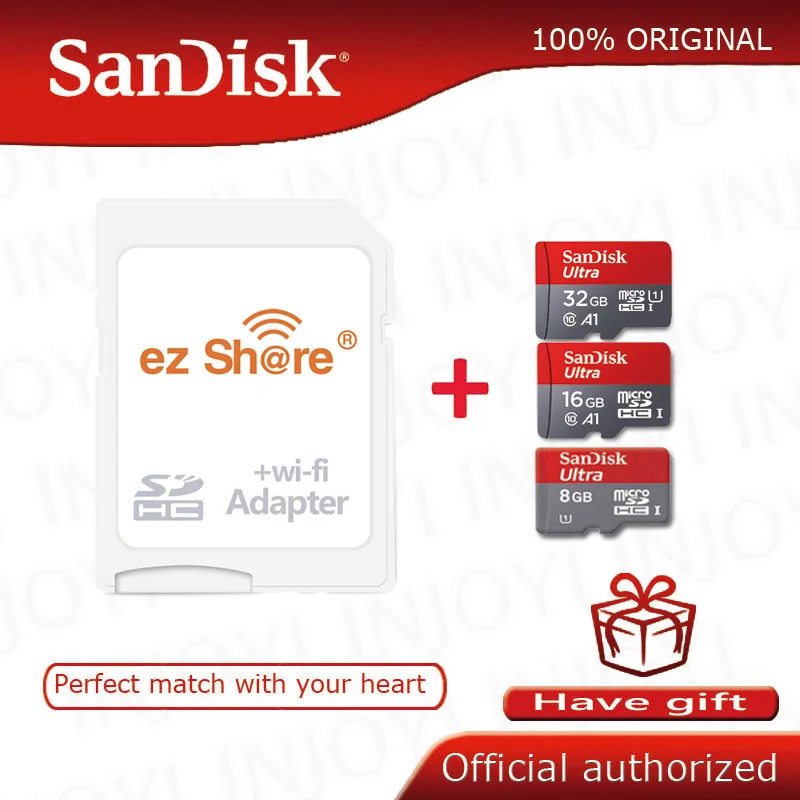 Беспроводной Wi-Fi адаптер ezshare + Sandisk Ultra, 8 ГБ, 16 ГБ, 32 ГБ, класс 10, беспроводная TF-карта, карта памяти Micro SD