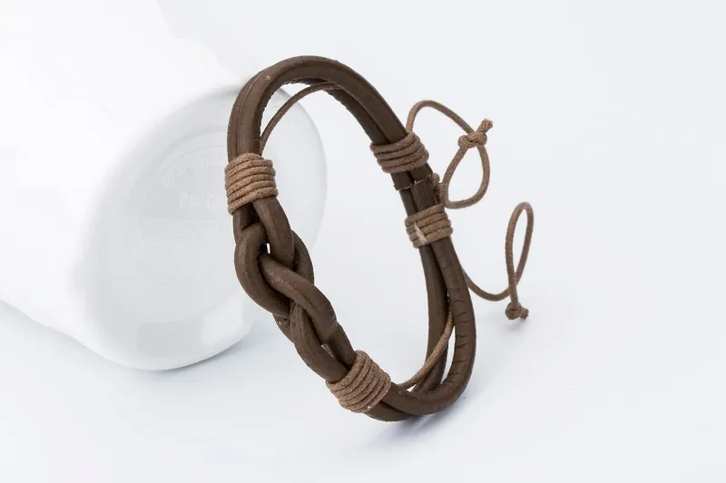 Горячая распродажа! Модный Шарм Кожаный браслет мужские браслеты популярные мальчики DIY повязка нитка ручной работы коричневые плетеные браслеты