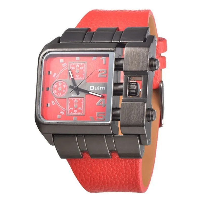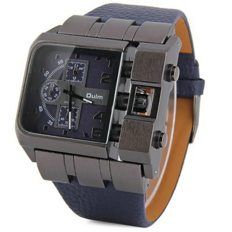 Oulm 3364 военные кварцевые часы с кожаным ремешком и прямоугольным циферблатом, роскошные часы известного бренда, мужские наручные часы, мужские часы