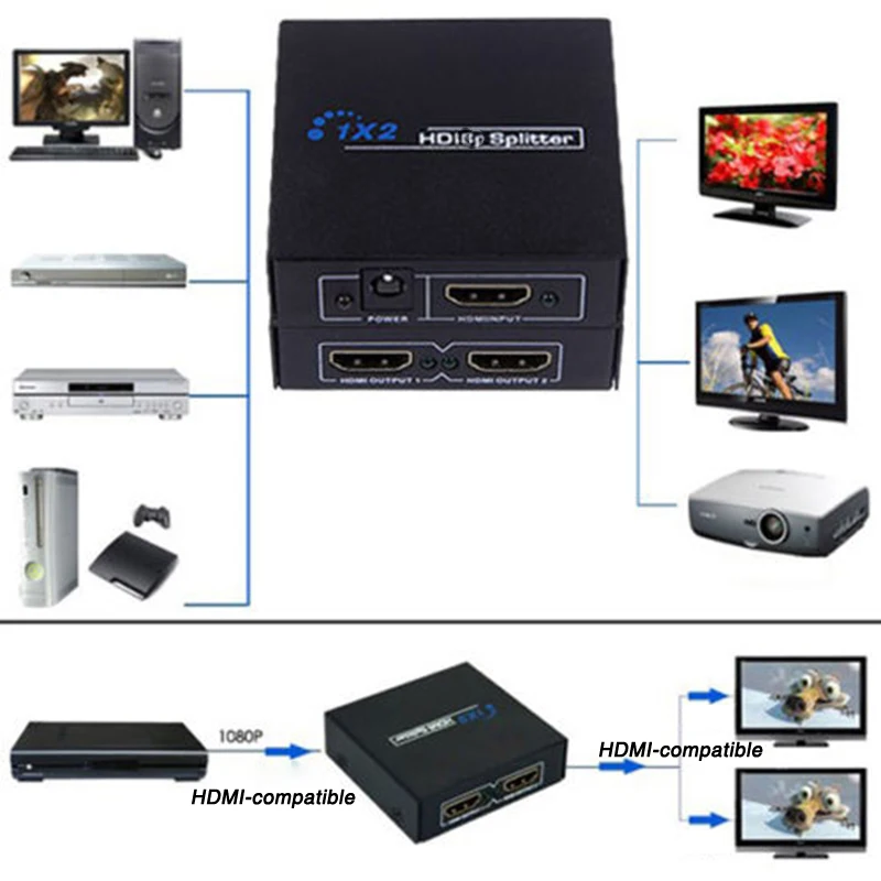 Разветвитель 1 в 2 выхода 1080p HDMI-совместимый 1x2 усилитель сигнала мощности новая коробка 1,3b 1,4 совместимый DVD-плеер