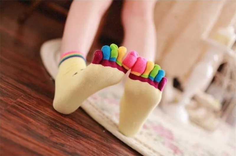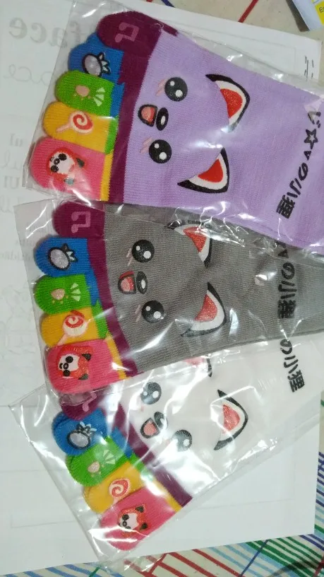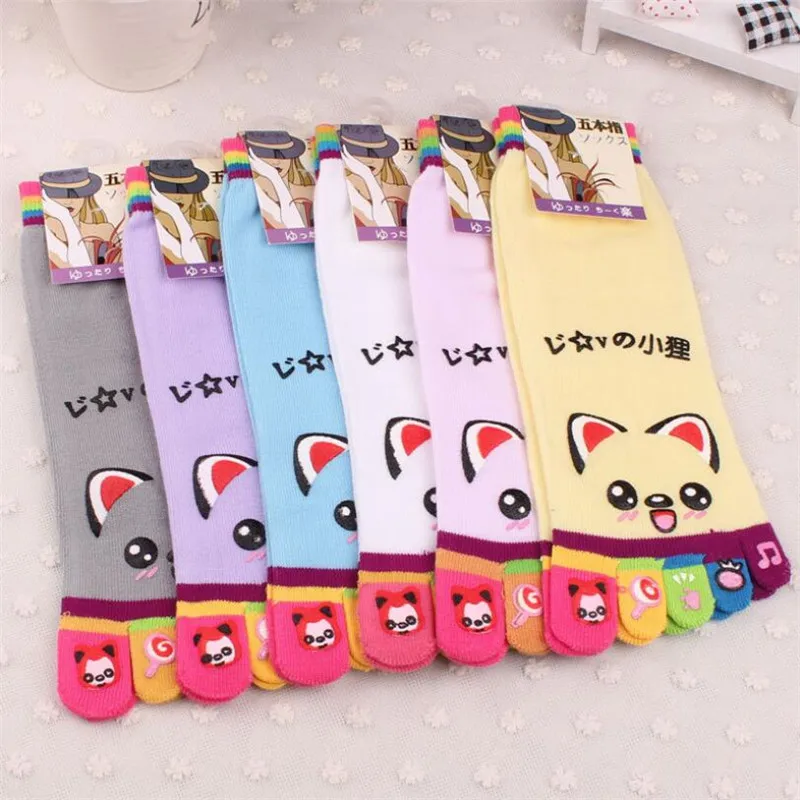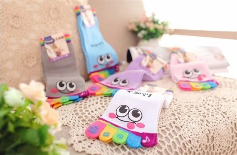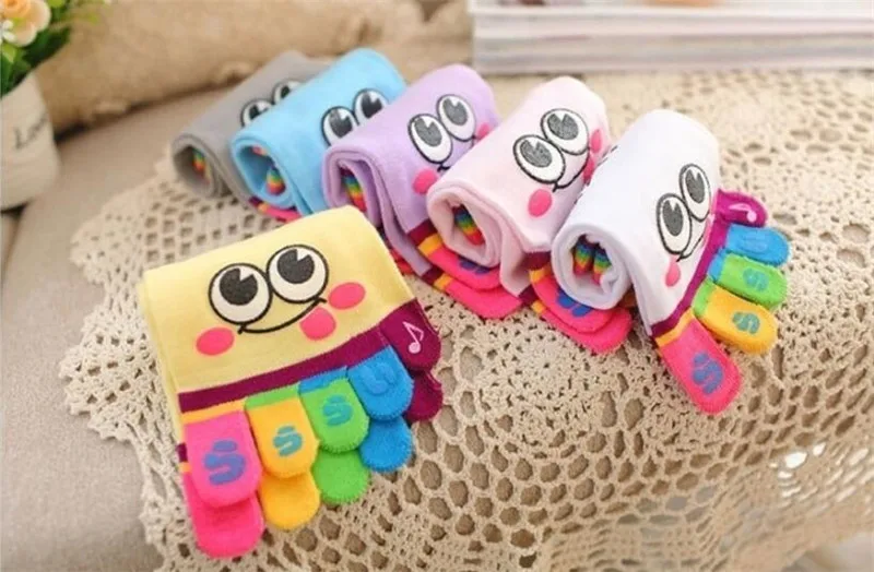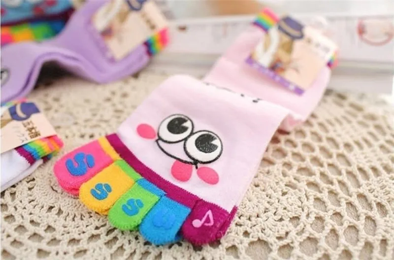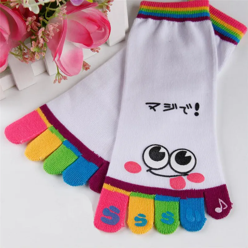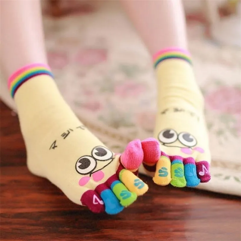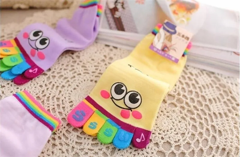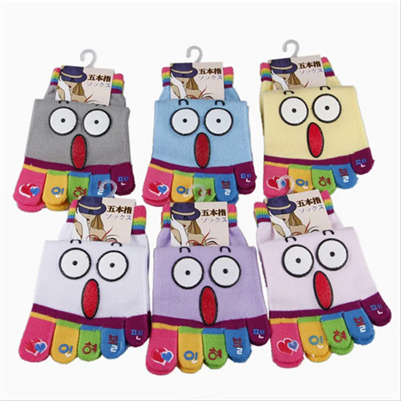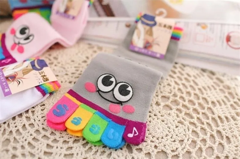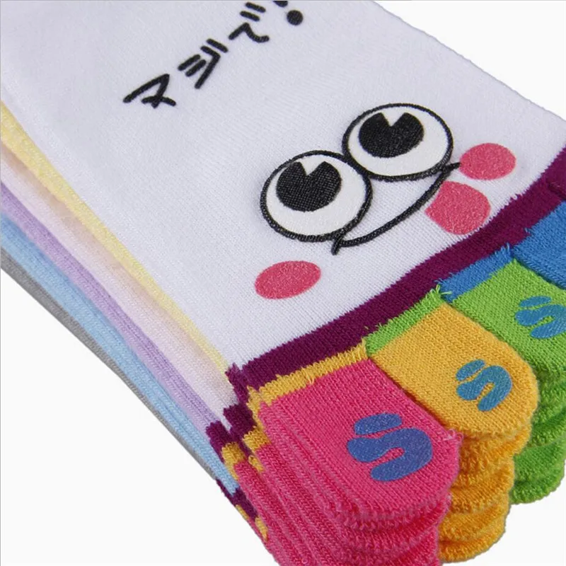 Милые женские хлопковые носки с 5 пальцами, 5 парлот, красочные Мультяшные массажные женские носки для пилатеса, дамские носки с пятью пальцами и смайликом