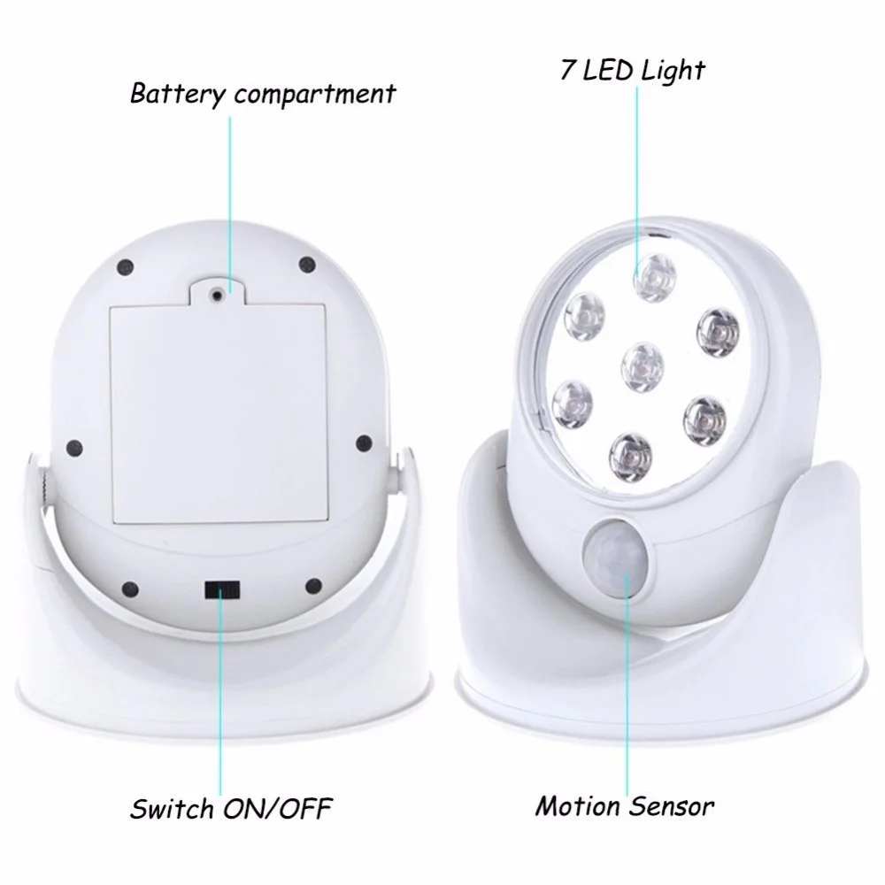6 в 7 светодиодов, беспроводной светильник с датчиком движения, настенный светильник с вращением на 360 градусов, белые светильники для крыльца, светильник s для помещения и улицы