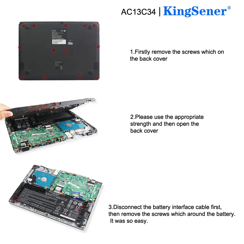 Аккумулятор KingSener AC13C34 для ноутбука Acer Aspire V5-122P, V5-132, E3-111, E3-112, MS237, KT.00303.005, 11,4 в, 2640 мАч, 30 Втч