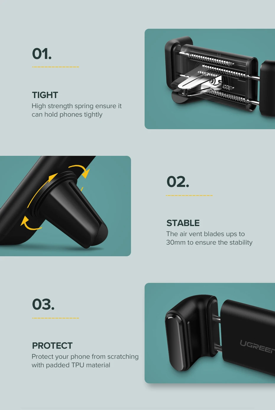 Ugreen Автомобильный Держатель для iphone Samsung Air Vent Держатель 360 регулируемый Автомобильный Держатель Телефона Держатель Мобильного Телефона Стенд для iPhone XS XS Max X 7 6