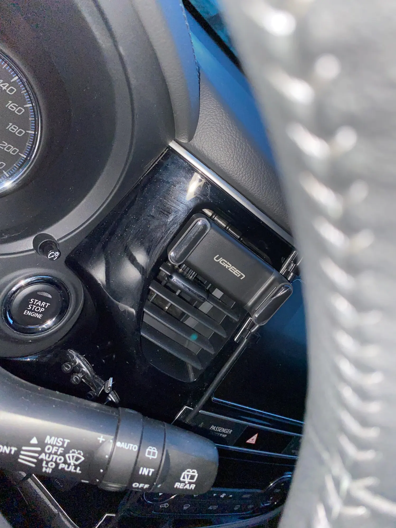 Как всегда ugreen радует своим качеством. Держатель изготовлен красиво и качественно, нет никаких торчащих кусков пластика. Смартфон фиксируется надёжно, механизм поворота позволяет использовать как в горизонтальном, так и в вертикальном положении.