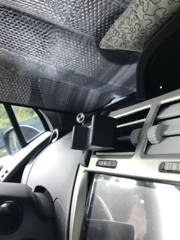 Хороший держатель. Для iPhone 7 в чехле подходит, хоть и туговато. Компактный, устойчивый. На Toyota Yaris телефон в держателе слегка закрывает верхнюю часть экрана мультимедийного устройства. Либо, если поднять повыше, закрывает то табло, где скорость и прочее. Взяла, помимо него, держатель побольше, за 7 евро. Он не такой компактный, по сравнению с этим малышом, но блин как же удобно, что по нажатию кнопки боковые лапки раздвигаются! И туда можно поставить телефон с большей диагональю. В общем, буду пользоваться двумя по очереди.
