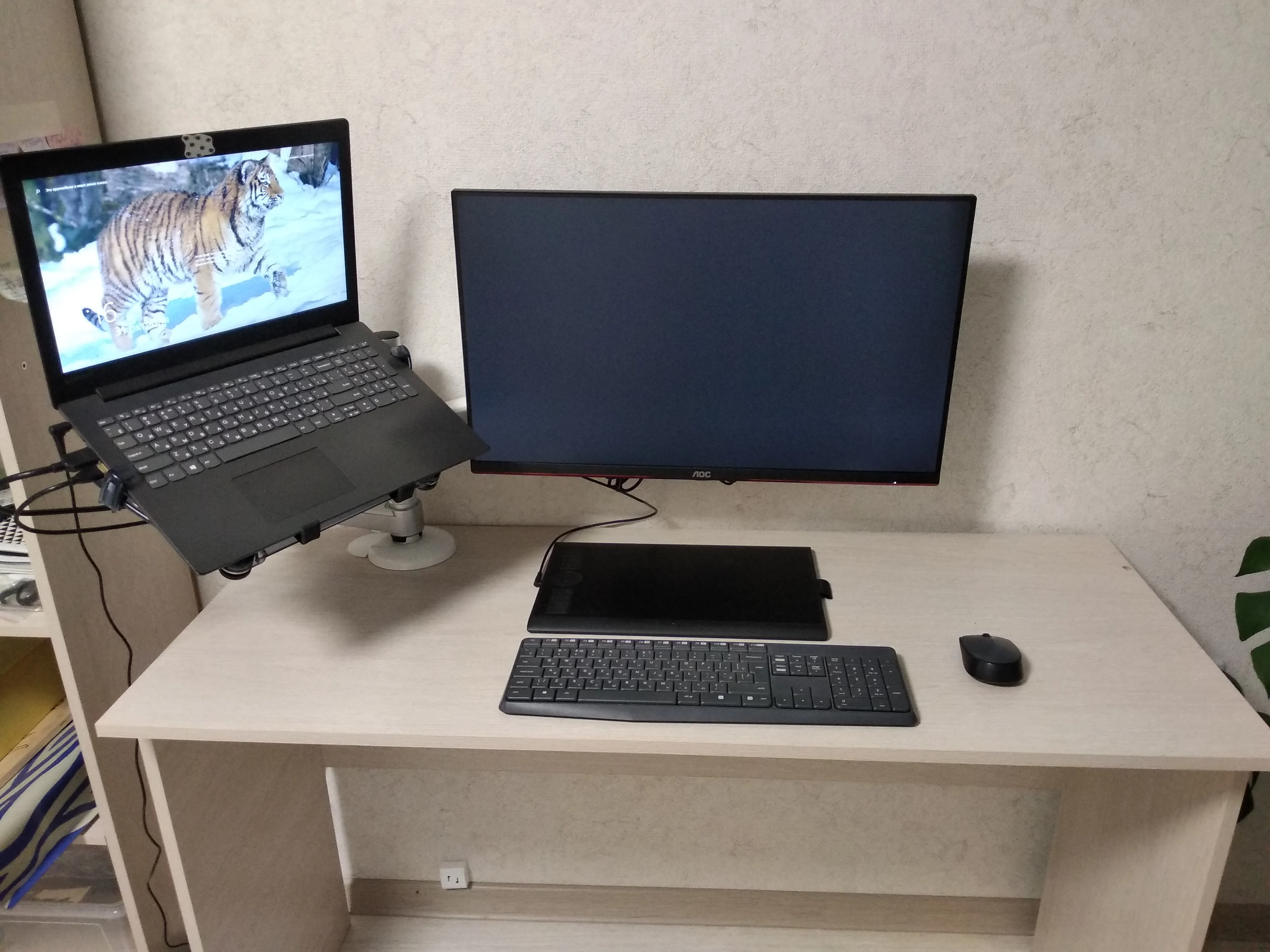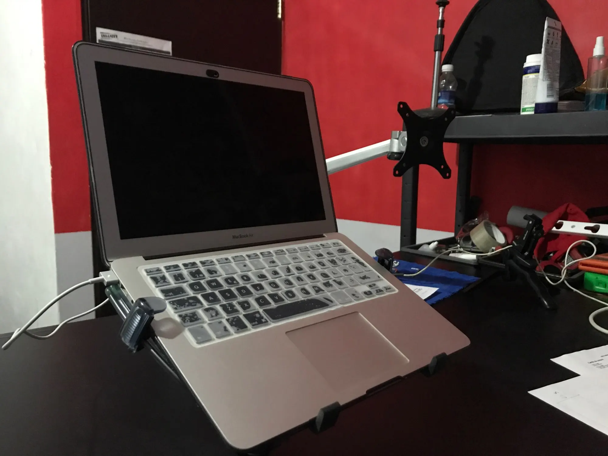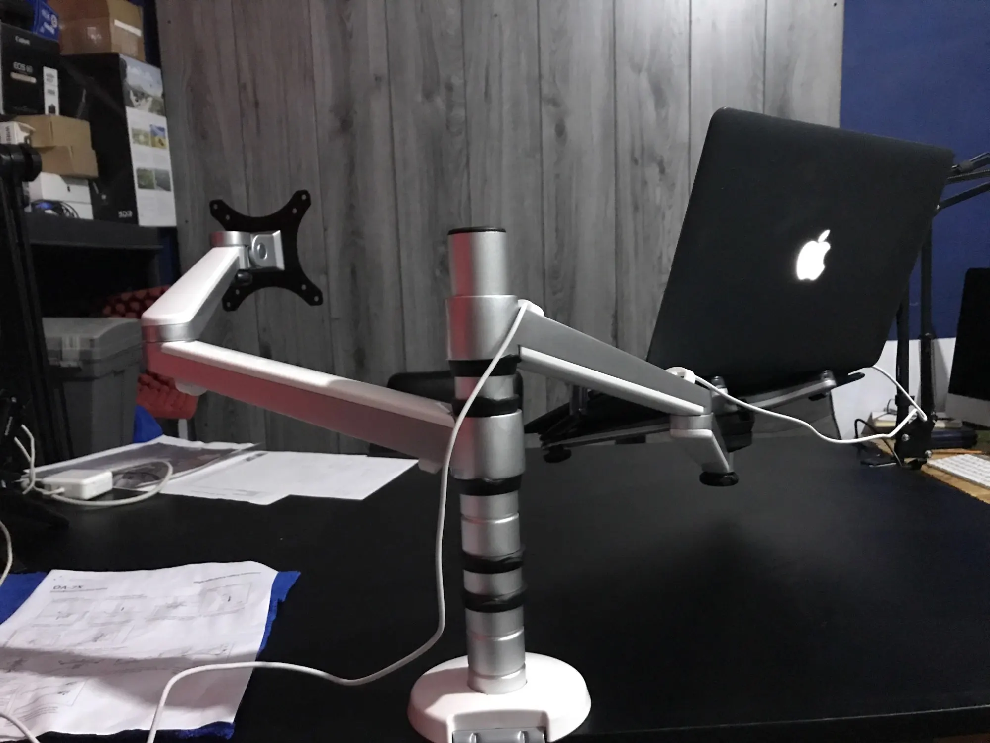 Я получил 2 руки с клипсами cabel И место для ноутбука, чтобы hige и не может понизить его И