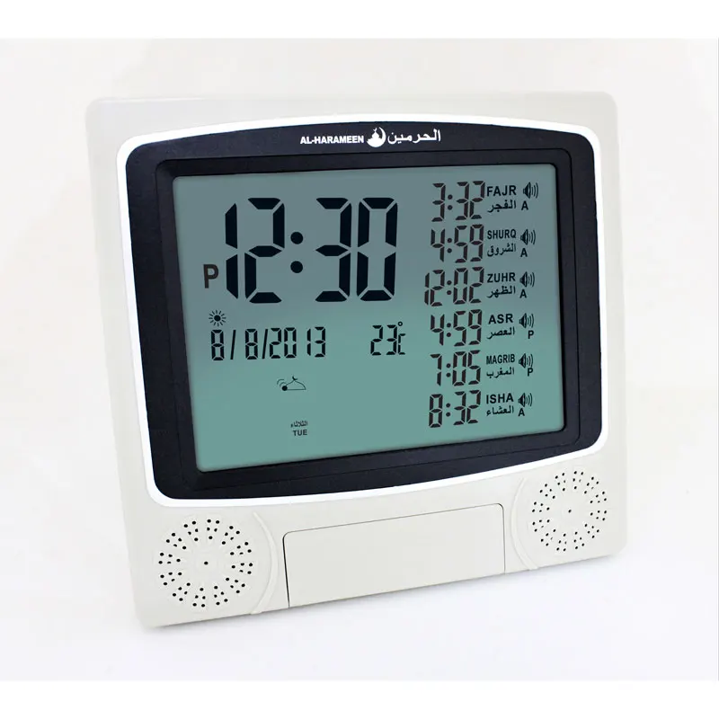 AL HARAMEEN мусульманские Azan настенные часы Azan молитвенные часы Мусульманский Коран часы с большим Ccreen 4010 с DC Jack 100% происхождение
