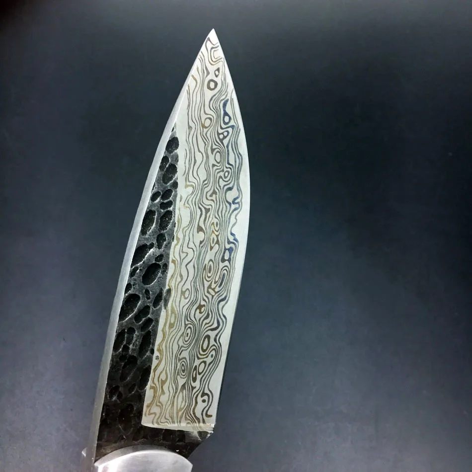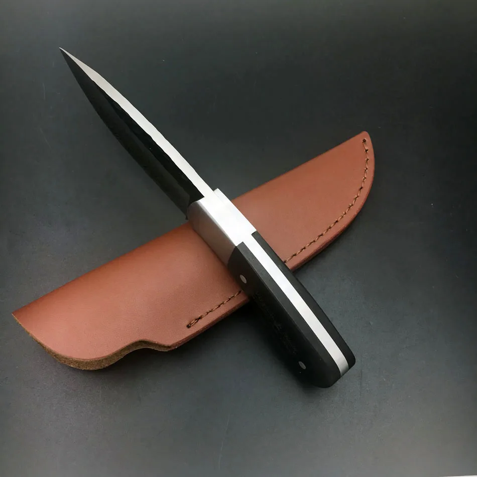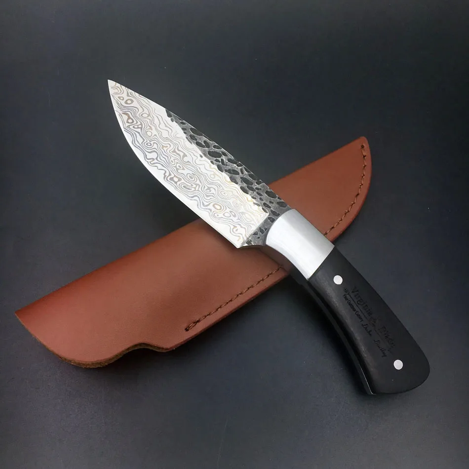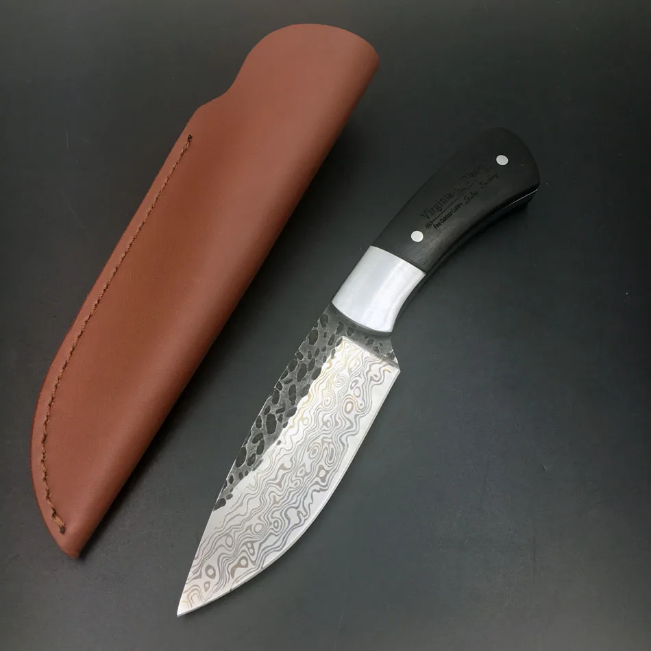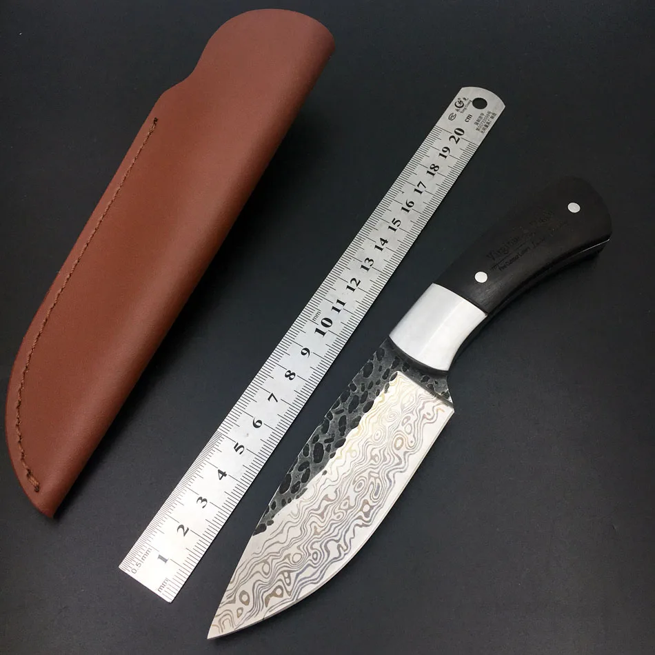58HRC прямой кованый охотничий нож ручной работы из дамасской стали с фиксированным ножом ручка из черного дерева с кожаным футляром