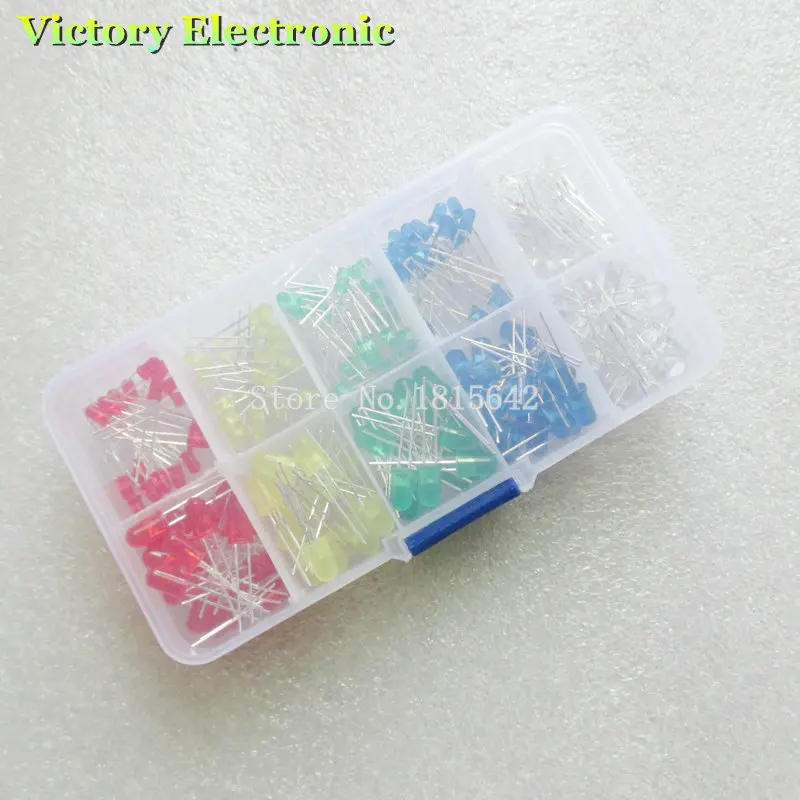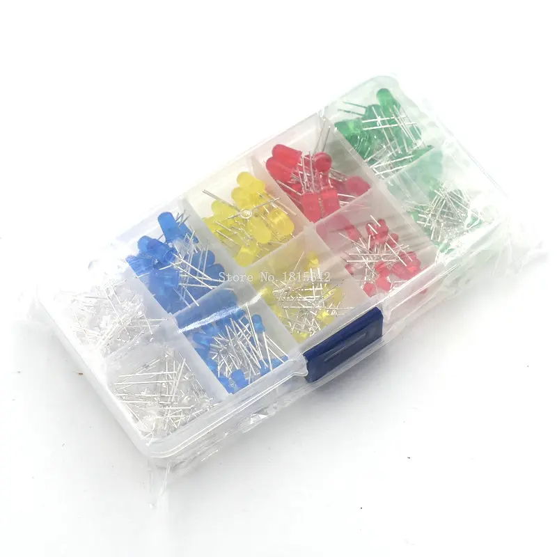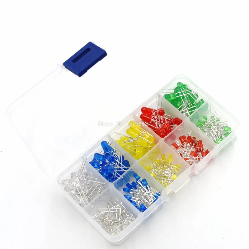 200 шт.лот 3 мм 5 мм комплект светодиодов в коробке смешанные цвета красный зеленый желтый синий белый светоизлучающий диод Ассортимент 20 шт. каждый новый