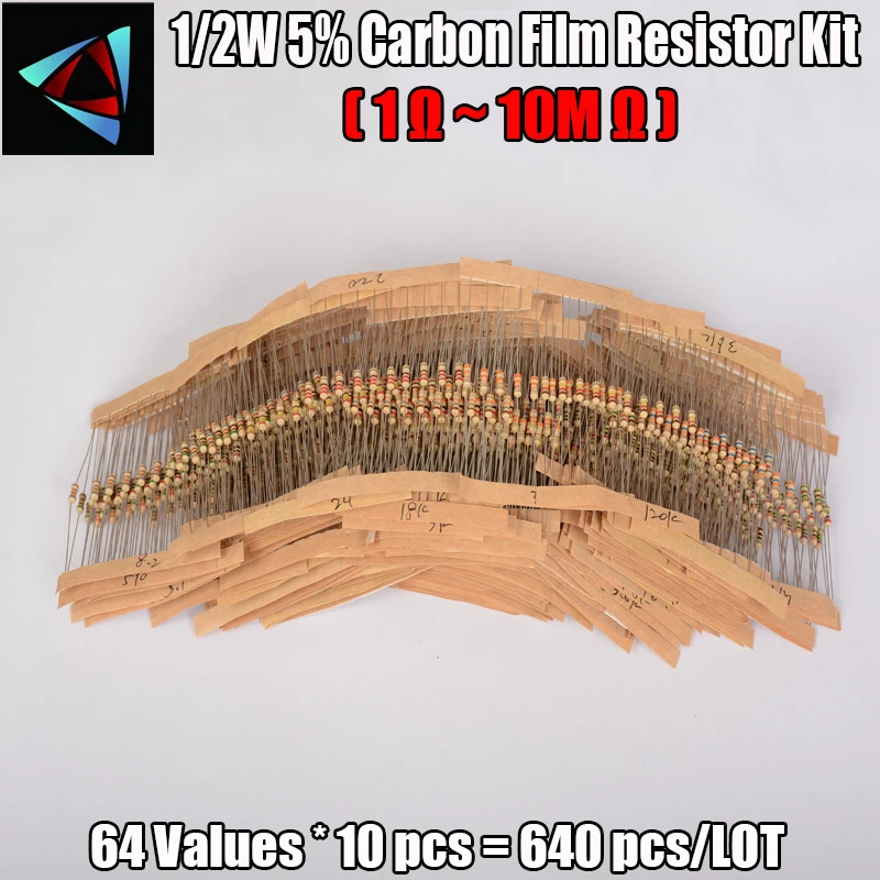 Карбоновые пленочные резисторы 500 шт.лот 50 значений 12 Вт 0,5 Вт ...