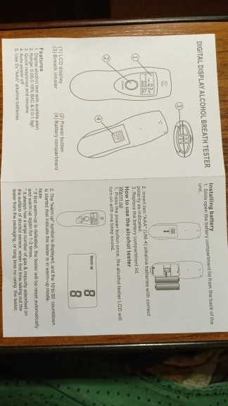 5 чтобы напомнить вам, вам и безопасности других, не пить и водить.По соображениям авиационной безопасности Доставка данного товара Без аккумулятораПосылка включает в себя:1 x жидкокристаллический дисплей тестер алкоголя1 x Руководство пользователя1 x подвесной ремень
