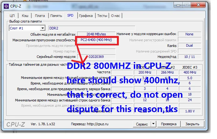 Страна: KZ Memory Capacity: 2g 800mhz for ALL MB Доставка: Standard Shipping 31.01.2021