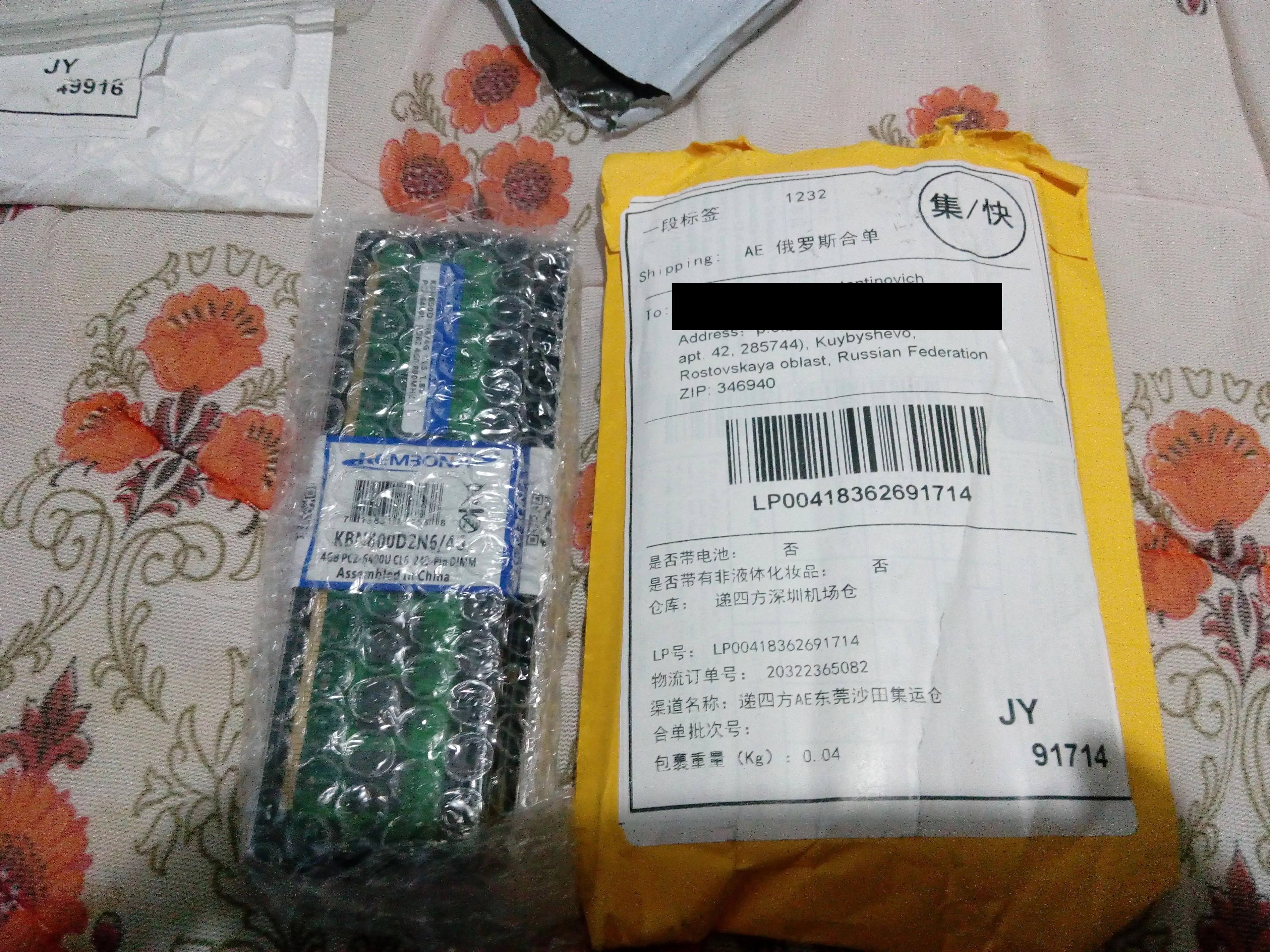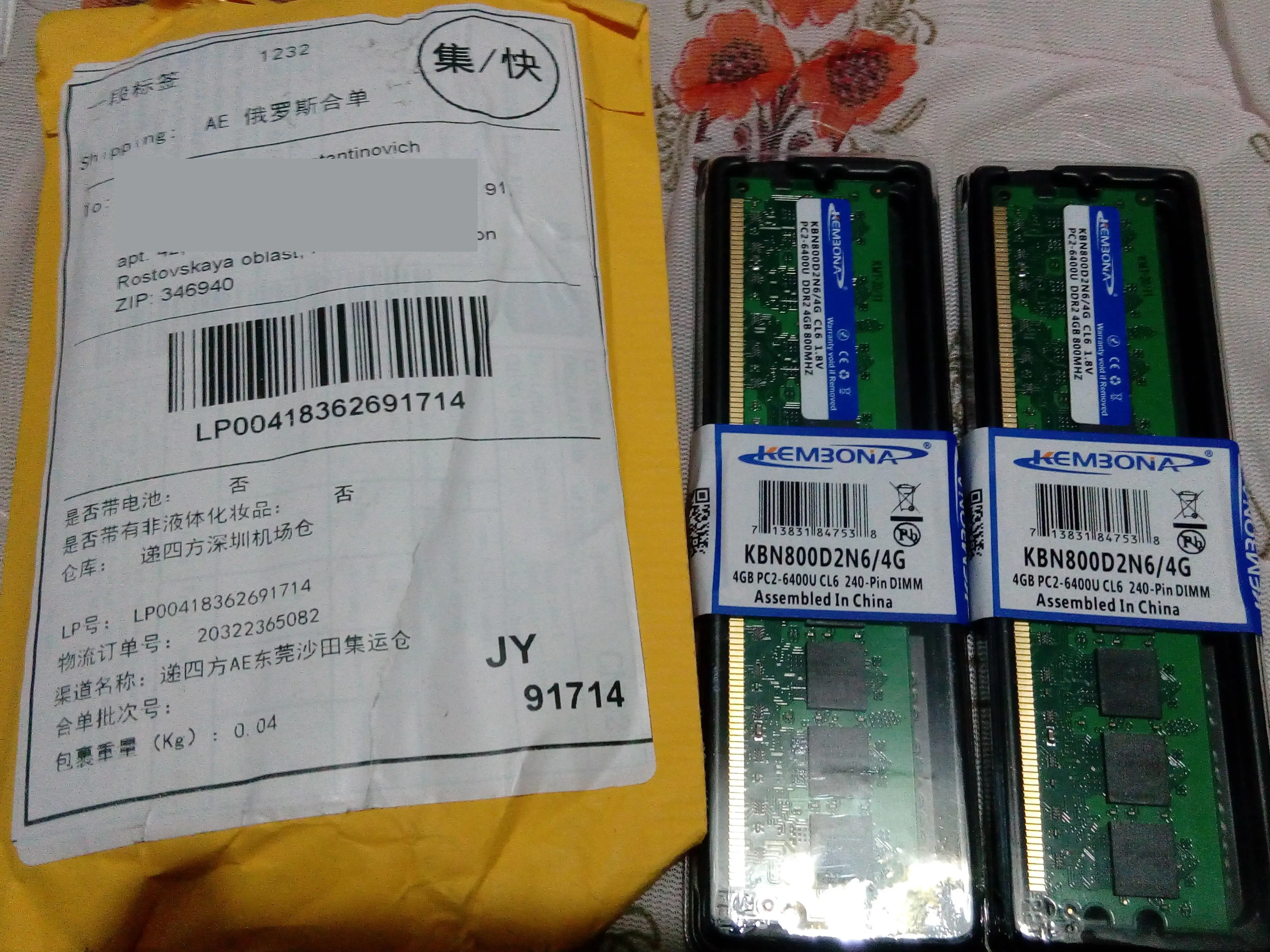 Заказал 2 модуля по 4г., пришло достаточно быстро, но в итоге 1 модуль оказался не рабочим. Связался с продавцом обещал помочь заменить на другую пришлось отправить авиапочтой. Надеюсь, что помогут.
