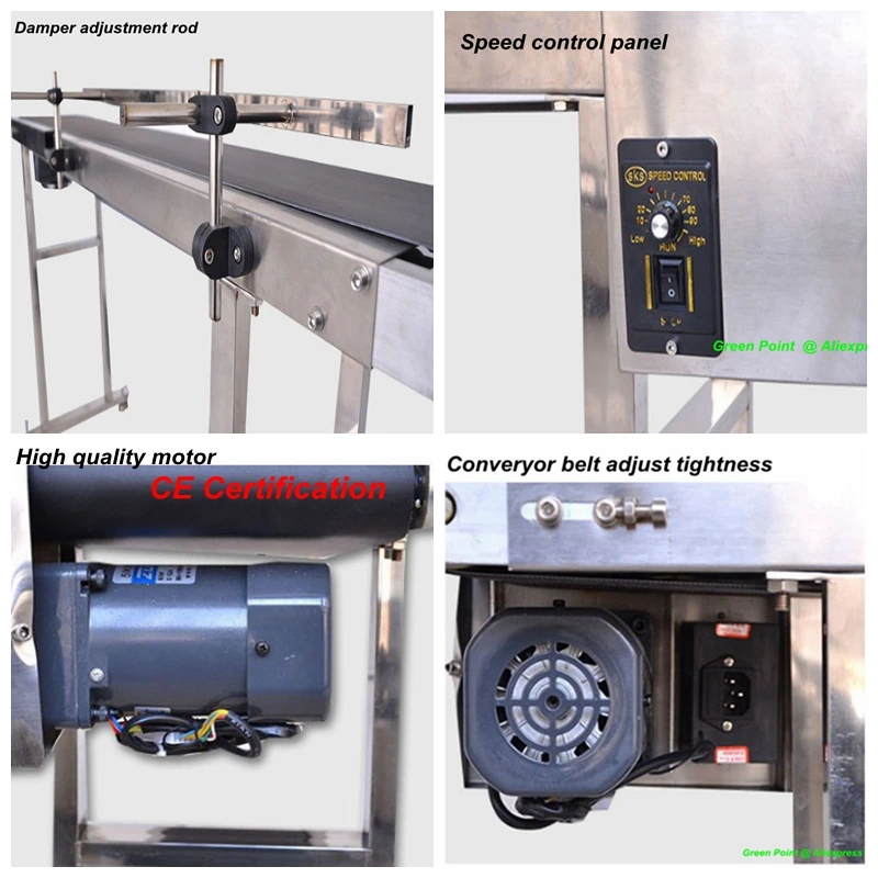 Этот конвейер в основном используется для переноса бутылок/металла/полиэтиленового пакета/бумажной коробки/наклеек и т. д. для печати струйного принтера. Широко используется в пищевых, питьевых, медицинских, электрических, автомобильных и т. Д.