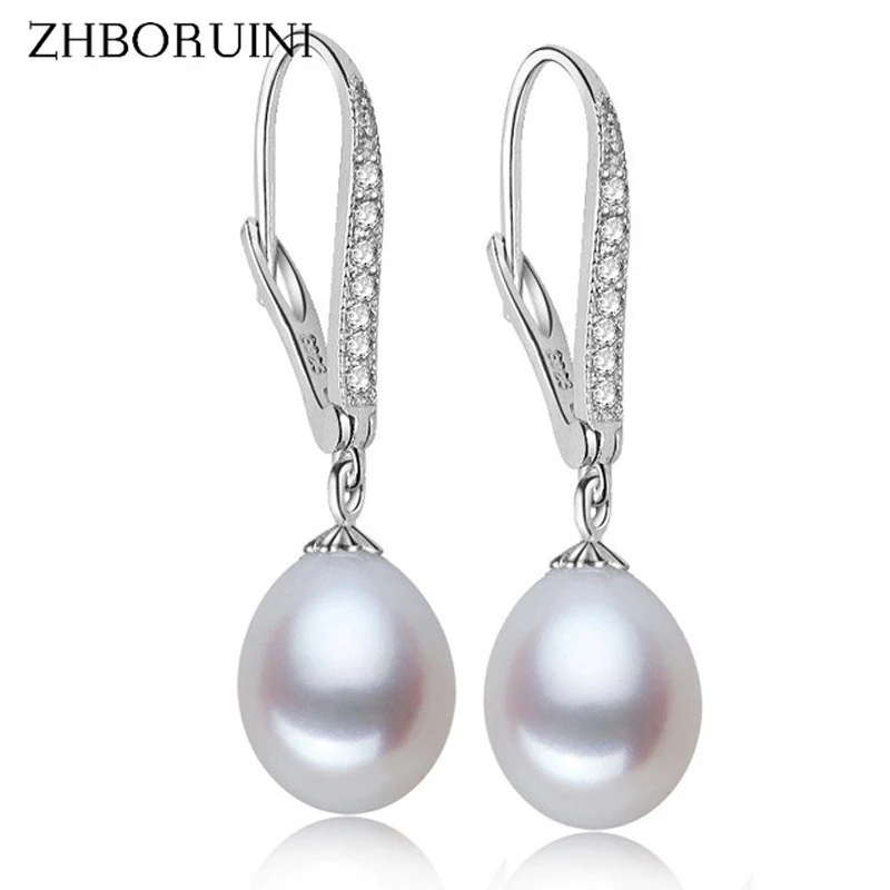 Женские серьги из серебра Мода ZHBORUINI пробы, с натуральным пресноводным жемчугом