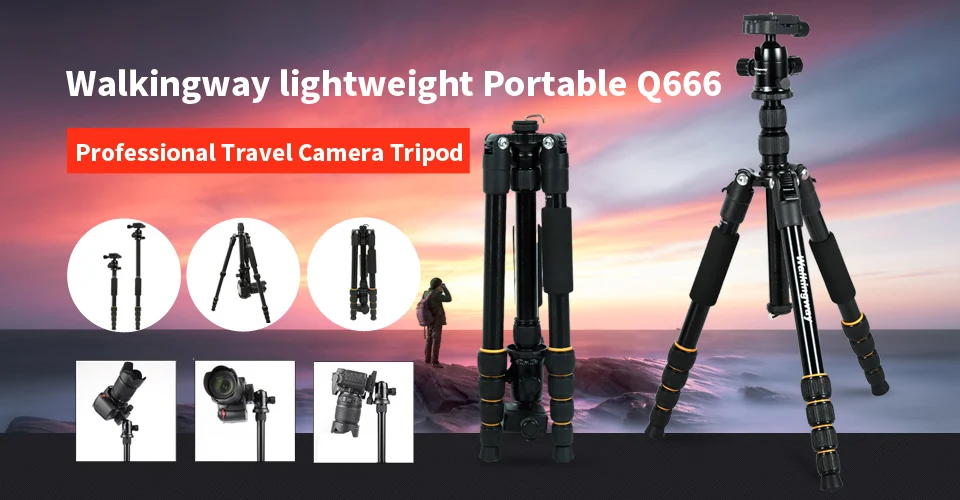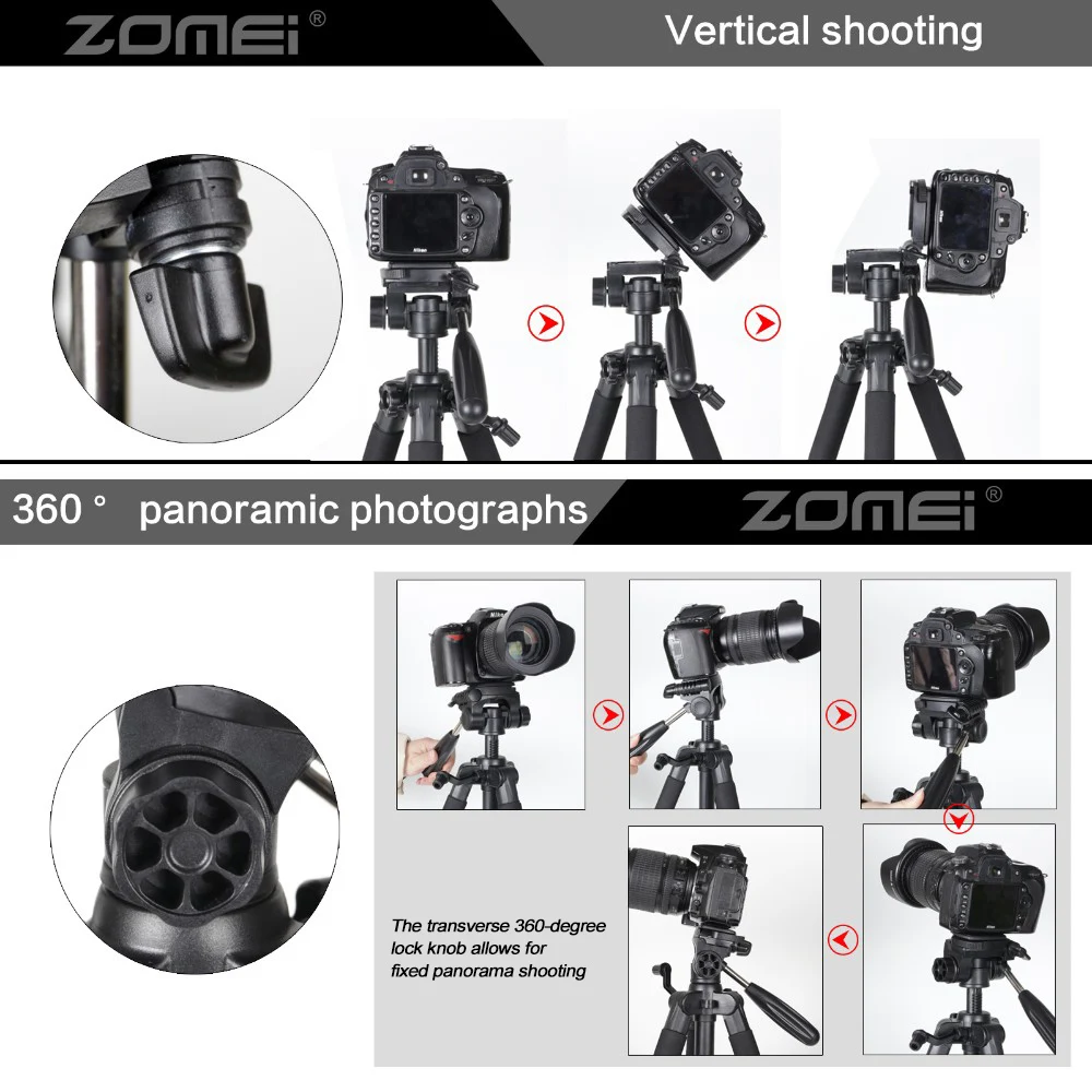 Портативный штатив ZOMEI Q111 для SLR и DSLR-камер, профессиональный дорожный алюминиевый, с цилиндрической головкой, три цвета