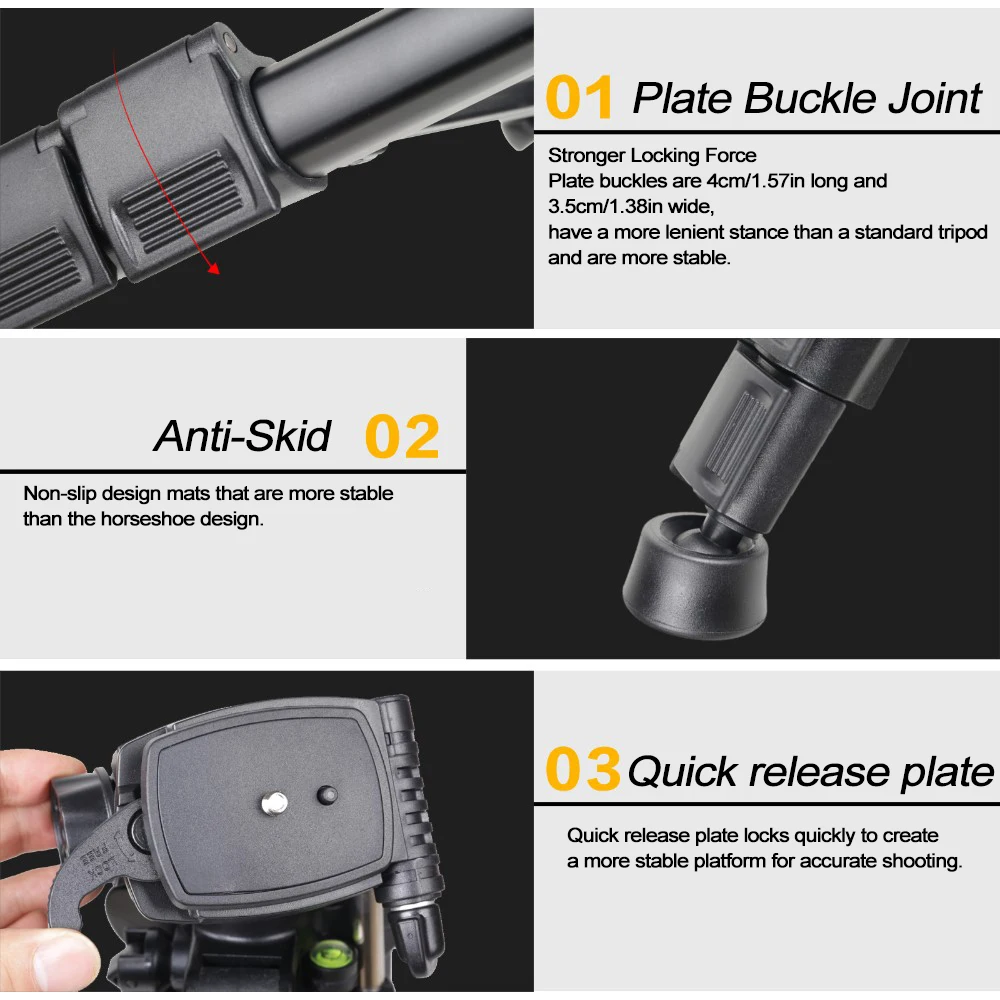 Отличный штатив! Сборка и качество отличные. Крепкий, устойчивый, не гнётся. Пришёл быстро. Имеет индивидуальный чехол для хранения.