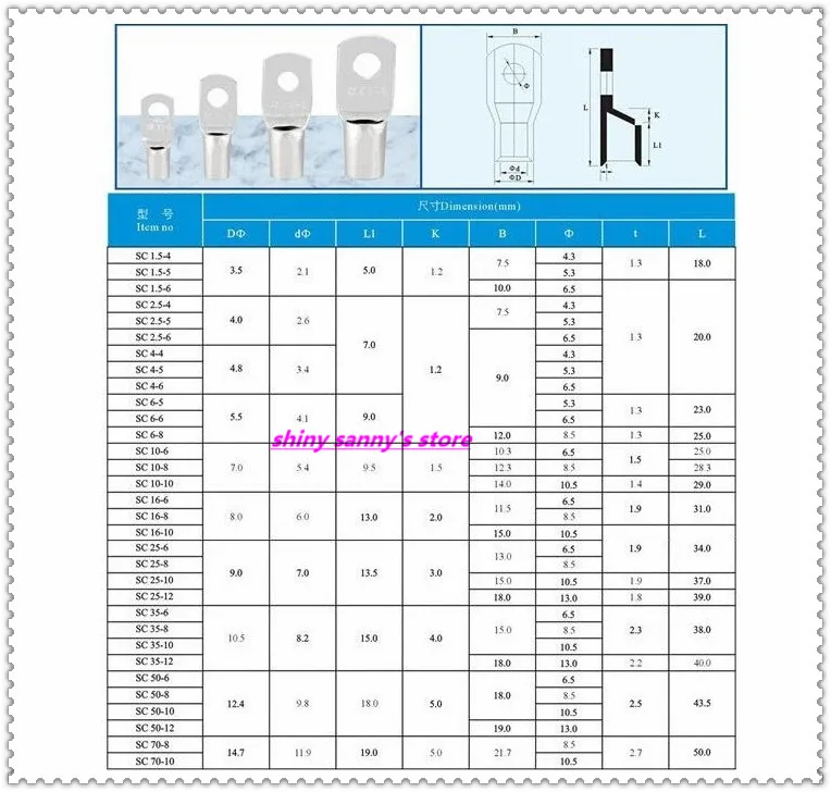 30 шт.лот SC 35-6 6 мм болтовое отверстие Луженые Медные кабельные ...