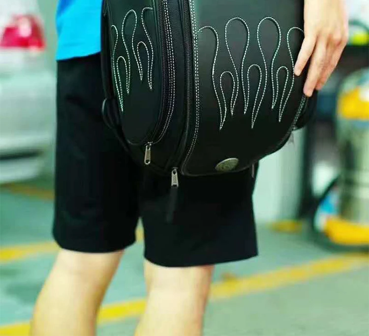 упаковано очень хорошо, внутри пакет с воздухом, чтобы сумка не мялась! качественный товар, хорошая экокожа. снизу мягкая отстегивающаяся ткань. на мотоцикле за милион рублей не стыдно будет использовать)