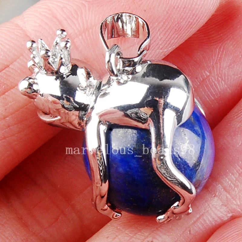 Бесплатная доставка красивые ювелирные изделия натуральный Лазурит лягушка шар круглый женский мужской кулон бисер PC3709